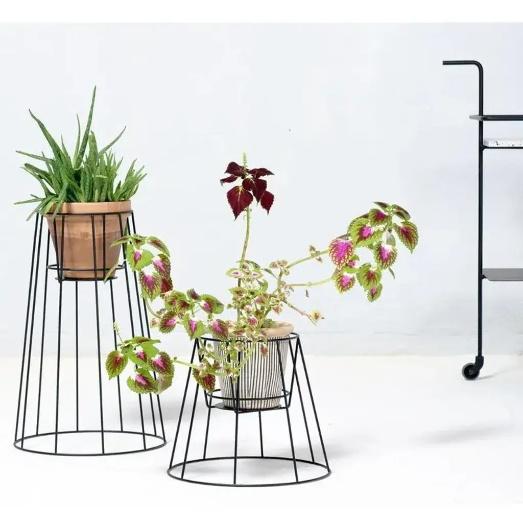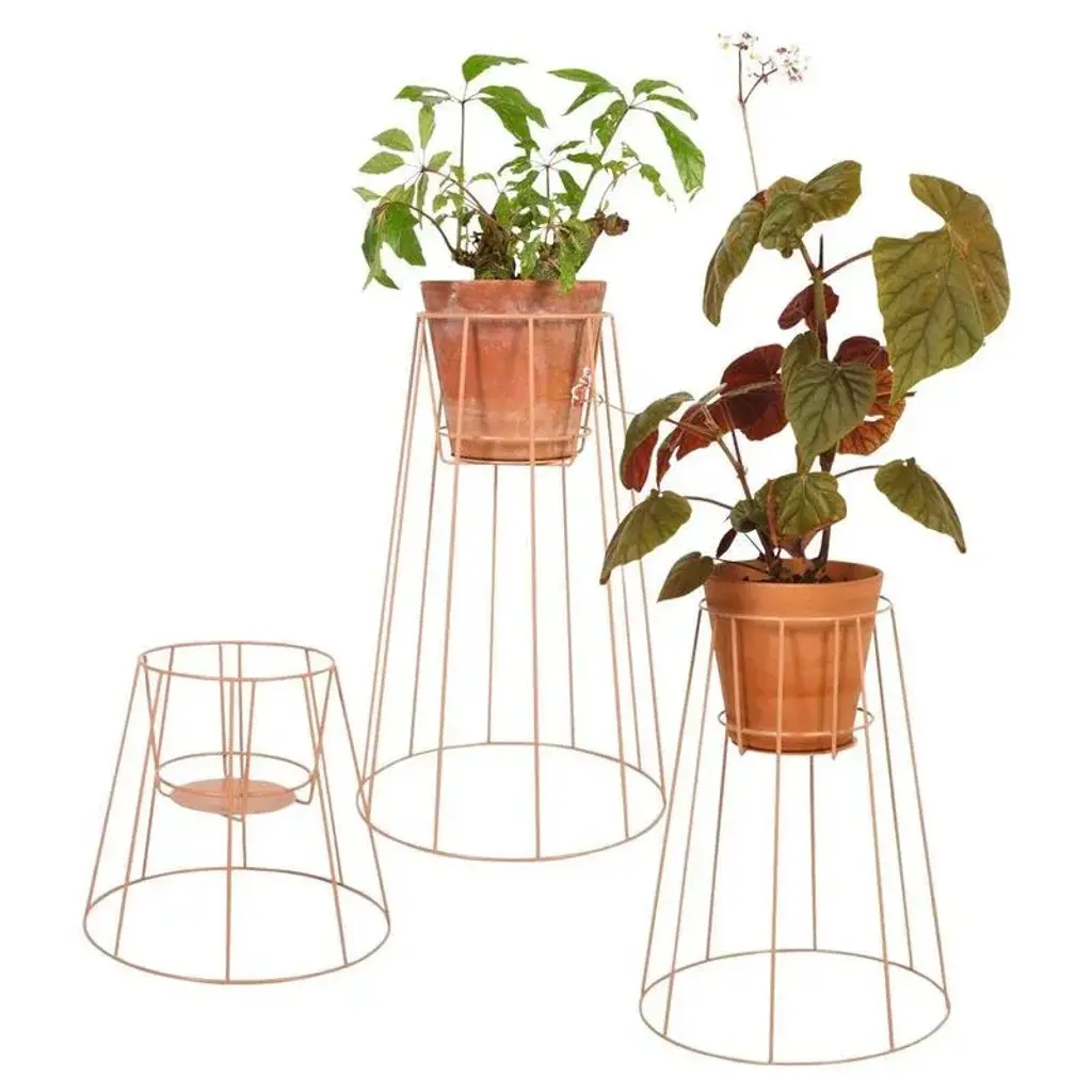 Set of 3 dusty peach cibele plant stands by ok design dimensions: d 35 x h 30 cm, d 35 x h 45 cm, d 35 x h 54 cm. Materials: powder-coated metal.