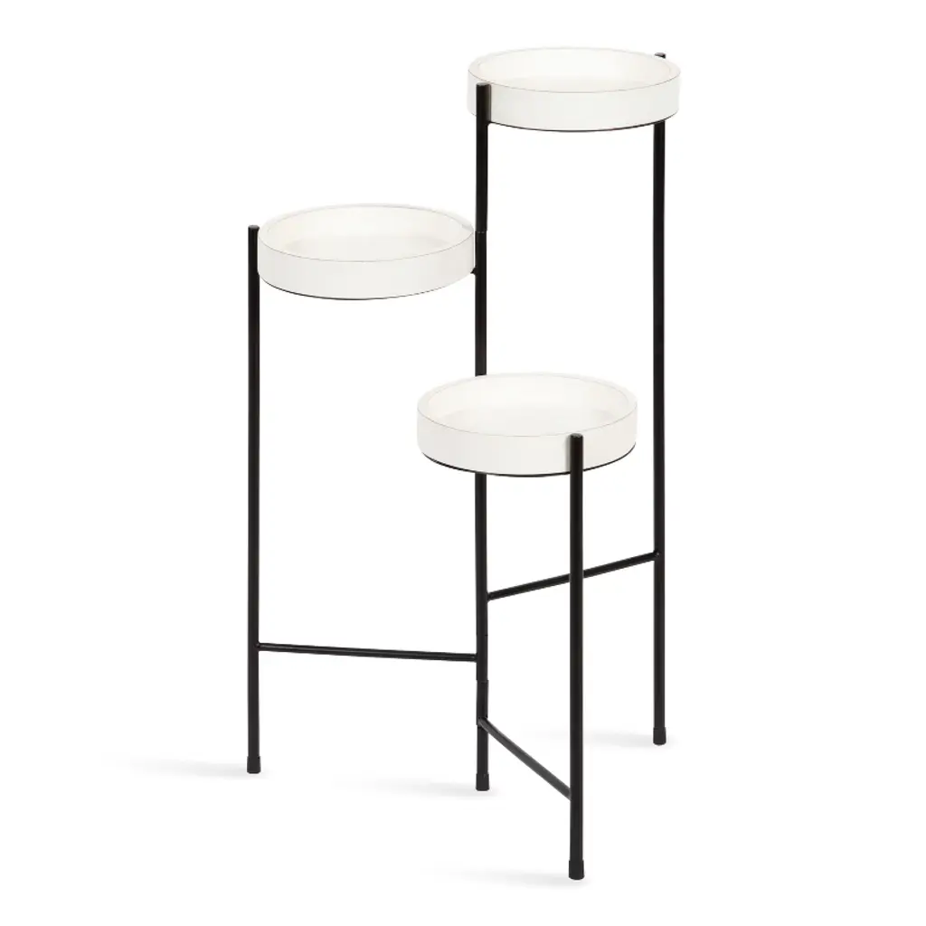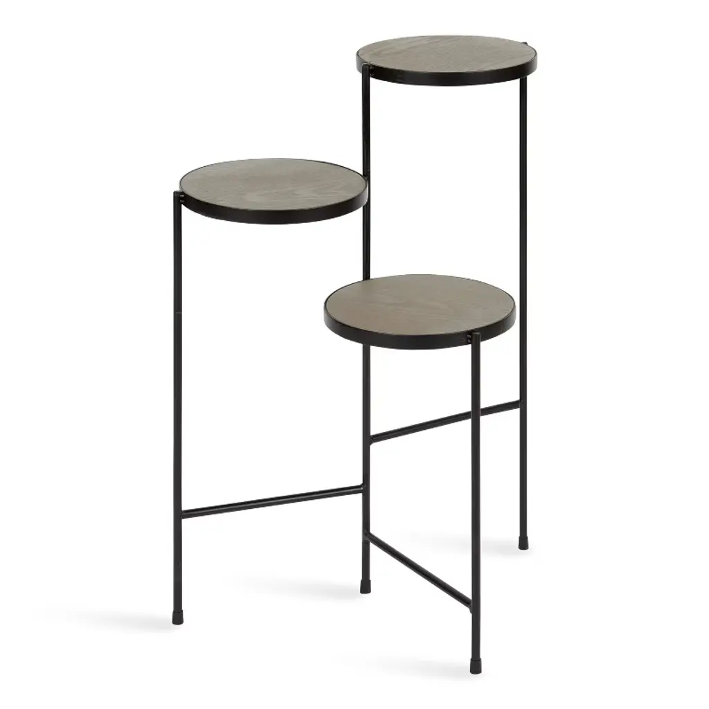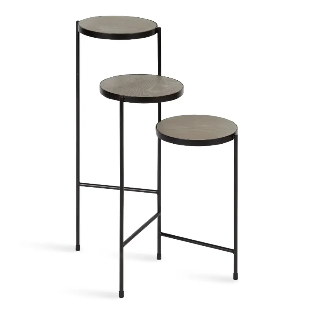 Create the cascading plant display of your dreams with the lovely Fields plant stand collection. This lovely indoor plant display stand features a minimal metal frame with three tabletops crafted from solid wood, creating a resilient yet bold accent piece that is made to last. In addition to including two premium materials, the Fields also features a two-tone finish: a bold, luxurious gold on the frame, and a unique black on each of the wood tabletops. This color combo is perfect for the modern or glamorous home, showcasing a revolutionized style for the 21st century. The overall size of the Fields is 22 inches wide by 17 inches deep by 30 inches tall, but the metal frame is adjustable to create more space in the room. Use the 10-inch diameters of the Fields to showcase plants or other accents, serve drinks on coasters, or act as a catch-all for your daily necessities. This lovely stand is a fantastic accent to add to your living room, bedroom, or entryway, showcasing your personal style while offering a refreshing touch of greenery.
