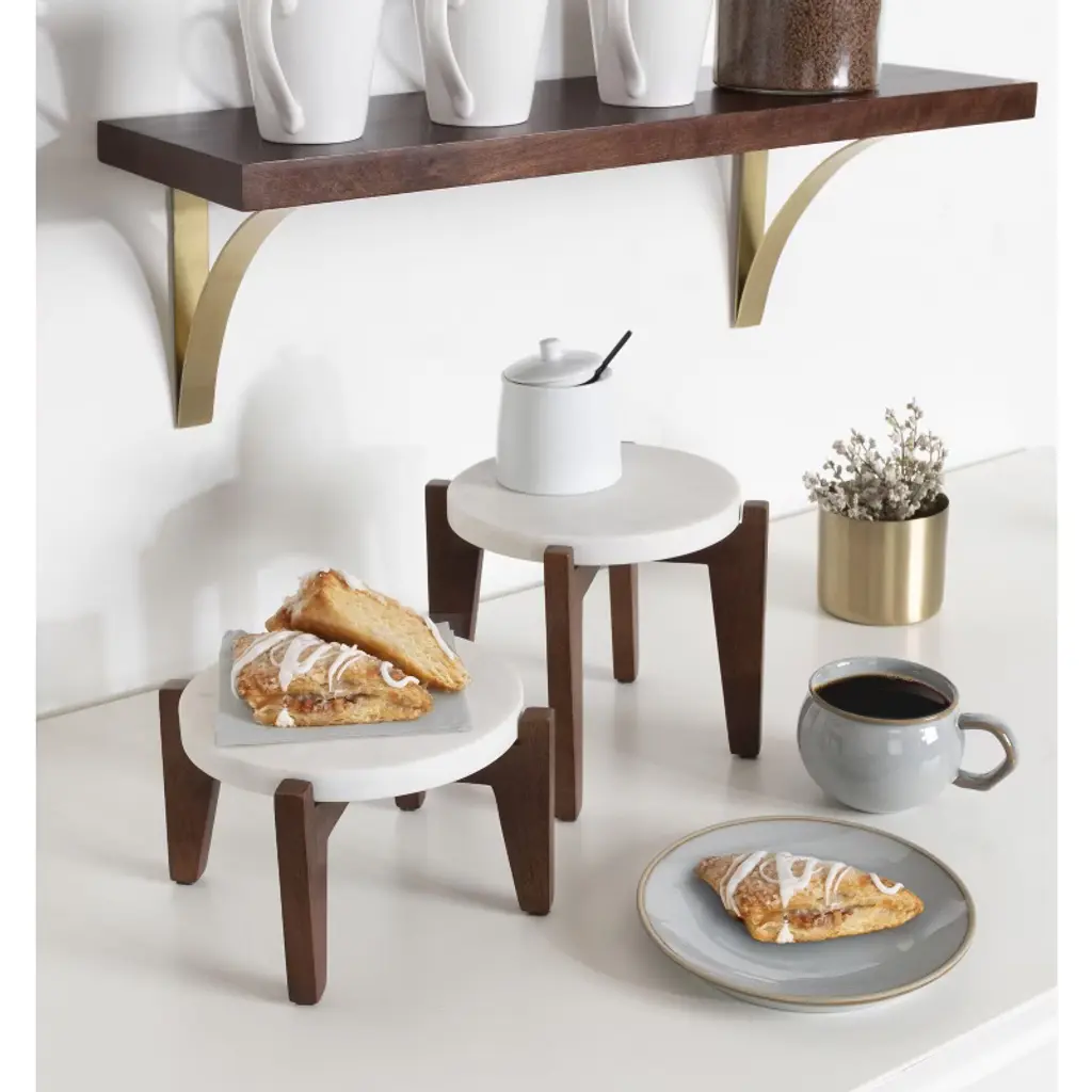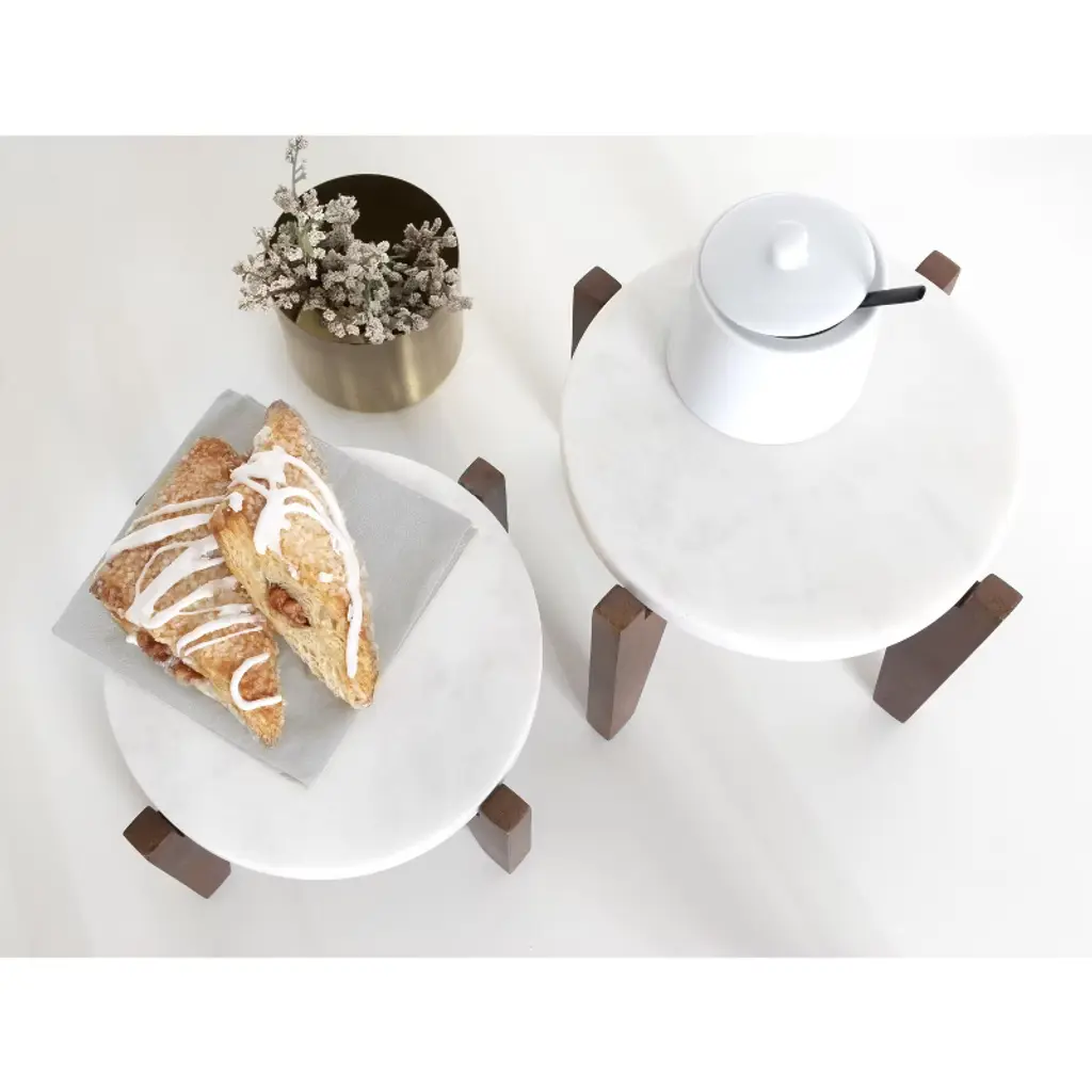 Discover a beautiful way to showcase your decorative plants and other household items with the charming Icelyn plant stands. The Icelyn plant stands take inspiration from the sophisticated aesthetics of mid-century modern design, featuring two simple yet secure bases and trendy round tabletops. The stand of the Icelyn was crafted from sophisticated mango wood, while the tabletop is a premium, authentic white marble. Each of the Icelyns was handcrafted in India by talented artisans, giving each piece in this collection a distinct look in terms of finish, wood grain, marble veining, and texture. The Icelyns are excellent plant stands for indoor plants, featuring two distinct sizes: the larger version is 8.25 inches wide by 8.25 inches deep by 6.75 inches tall, while the smaller Icelyn is 8.25 inches wide by 8.25 inches deep by 4.75 inches tall. These varied sizes allow you to layer your decor, with an additional capacity of displaying them together or spread throughout your home. Each of the Icelyn stands features protective footpads on the bottom to protect your hard surfaces from damage.