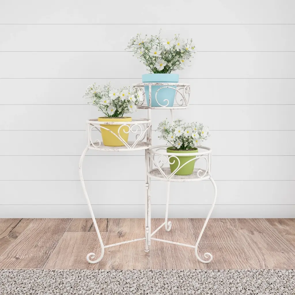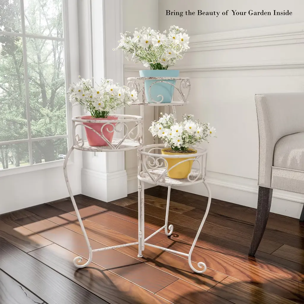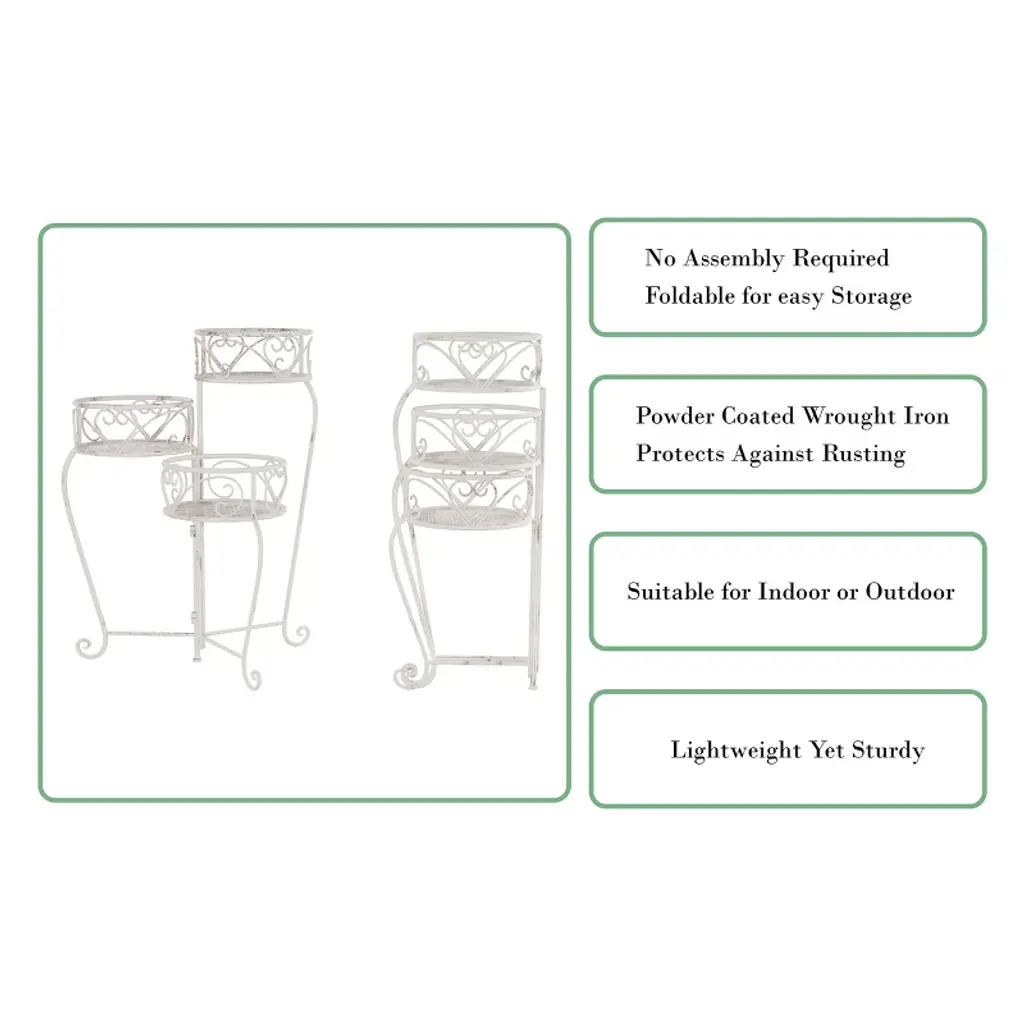 Nature Spring 3-tier Folding Wrought Iron Metal Plant Stand For Indoor Or Outdoor Use - White