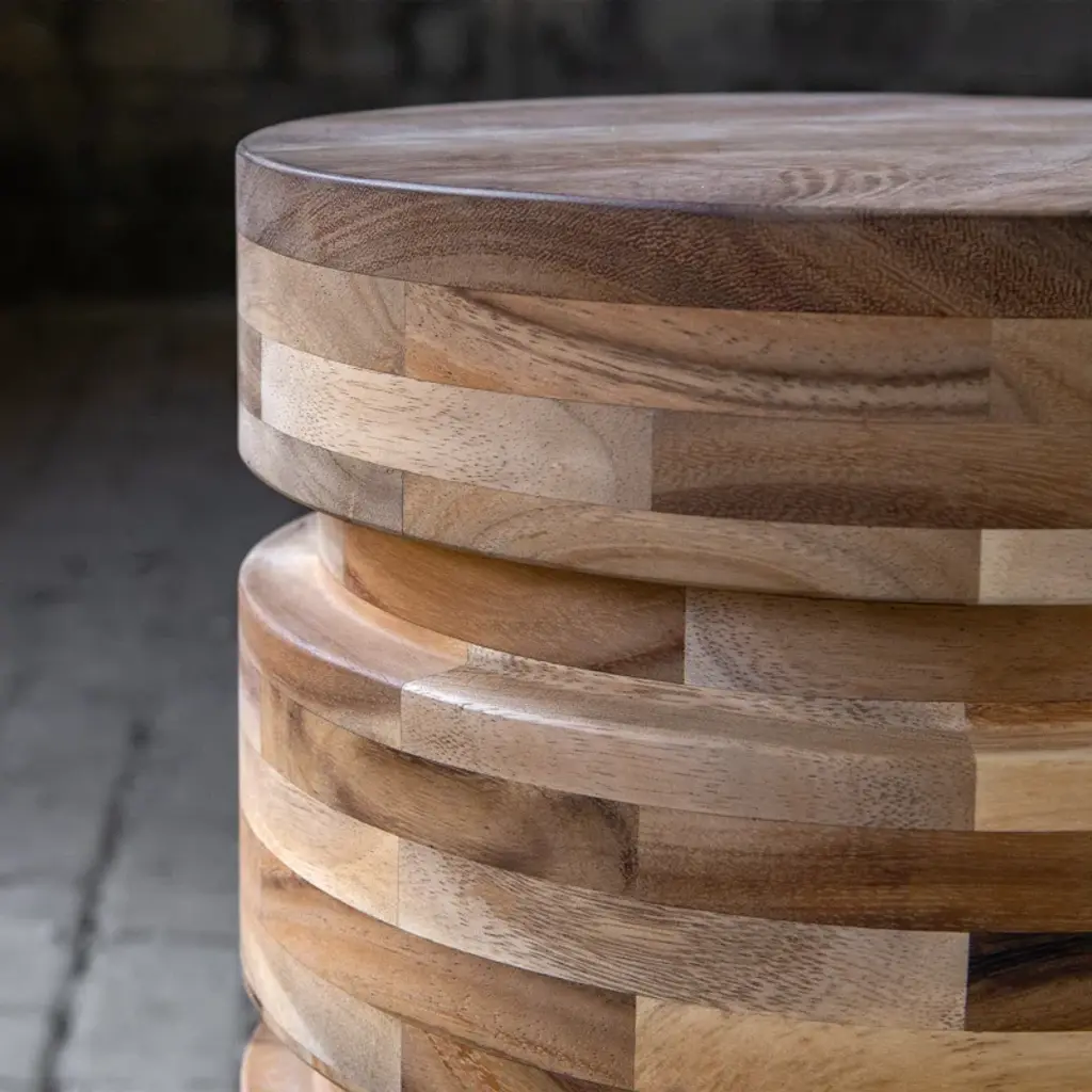 Showcasing the beauty of monochromatic natural tones, this plant Table features solid acacia wood pieces with asymmetrically placed cutouts