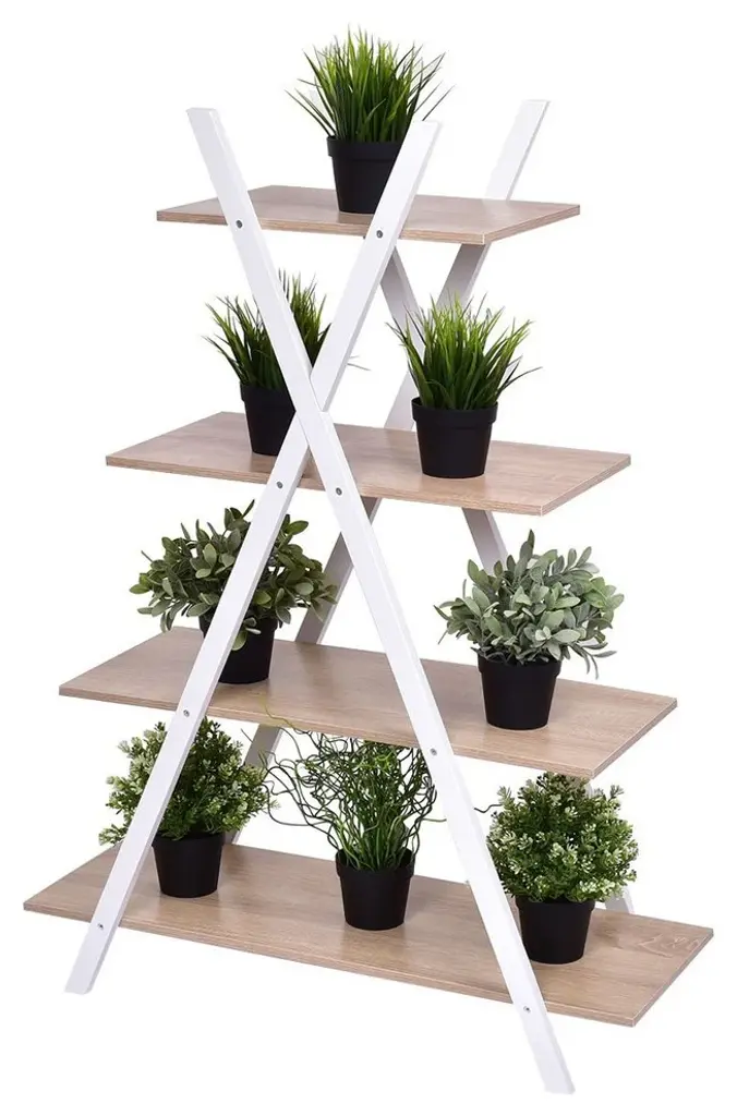 Keep your potted plants organized with our folding plant rack! The 4-tier plant rack features spacious slatted platforms for holding your potted plants. Made of 100% solid wood, the wooden plant stand is built to last. And safe teak oil paint makes it perfect for indoor and outdoor use. What's more, X-shaped structure increases the overall sturdiness and stability. Besides being used as a plant stand, it also serves as bookshelf, display rack, decorative stand for your living room, bedroom, balcony etc. When not in use, the flower rack is easy to fold down, allowing for easy storage or carrying.FeaturesNo assembly needed. Open and use it after receiving it Easy to fold into compact size for easy storage & carry Solid wood frame for high sturdiness and load capacitySpecifications:Color: Nature Teak Color Material: Wood Overall Dimensions: 15" x 12" x 48.5" (W x D x H) Folding Dimensions: 20" x 15" x 5" (L x W x H) Net Weight: 9 lbs Load Capacity: 44 lbs Package Includes: 1 x Folding Plant Stand 1 x User Guide