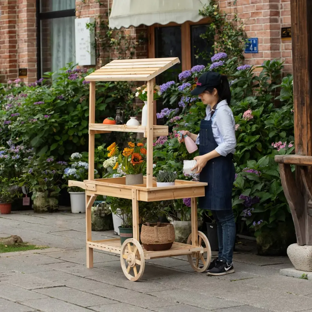 The unique and versatile design of the antique solid wood decor display rack cart wood plant stands is both a decorating and storage piece. This beautifully designed multiple shelves cart furniture is made with premium quality materials which are "china fir composite board". The rolling flower cart will complement your garden dcor and its vertical design will fit in any size room. This all-in-one rolling table furniture can be used as a flower pot stand, planter stands for outdoor plants, house plant stand, hanging plant stand, etc. The multiple shelves of modern plant cart furniture with wheels can support up to many items at a time. Freely enjoy all the benefits of the modern rolling table cart furniture and decorate your living space to bring in more elegance and beauty.