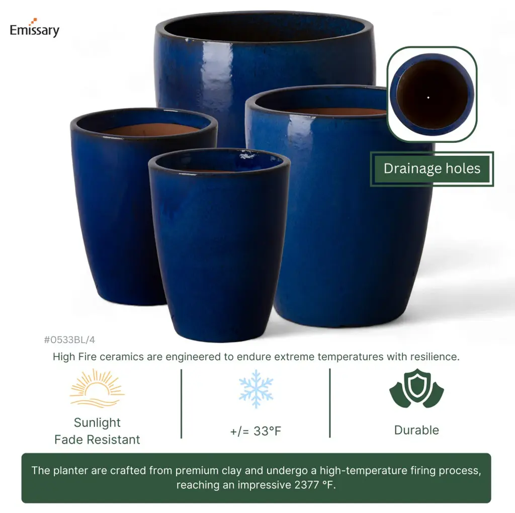 This Bullet planter is crafted of ceramic with a Blue glaze. Suitable for outdoor and indoor use. Adds color and texture to your home or garden.