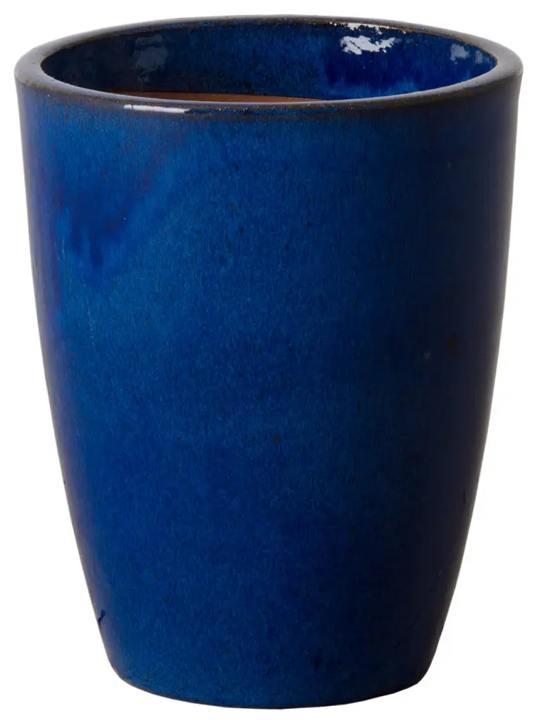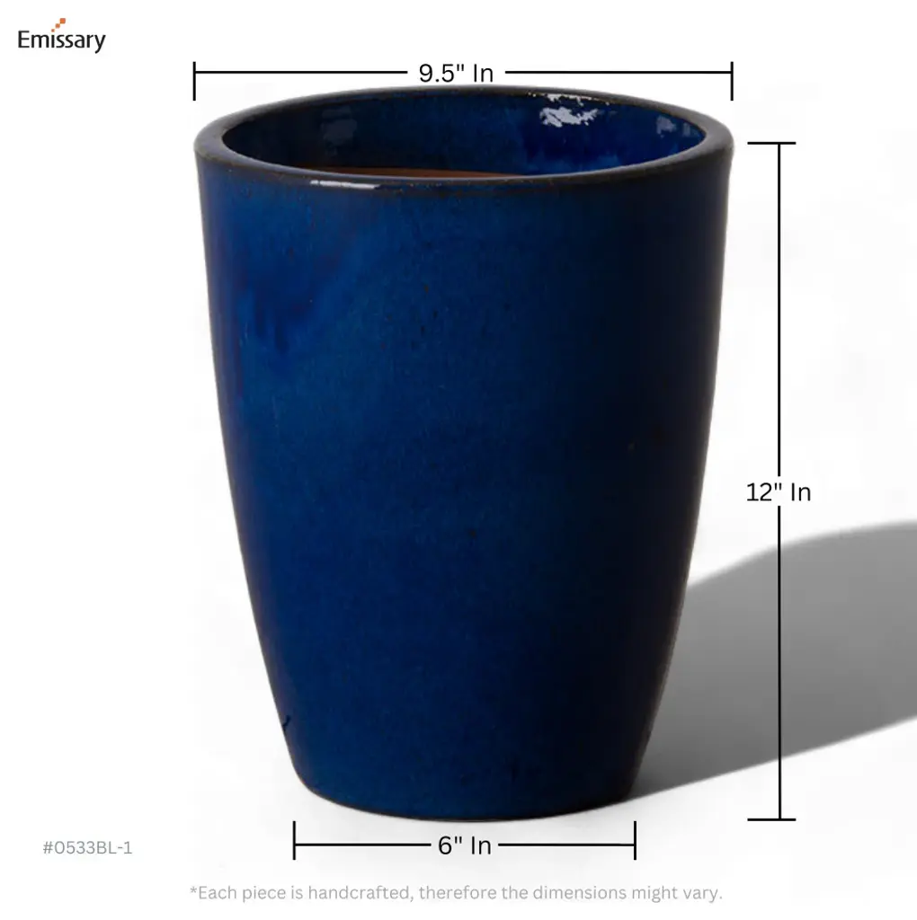 This Bullet planter is crafted of ceramic with a Blue glaze. Suitable for outdoor and indoor use. Adds color and texture to your home or garden.