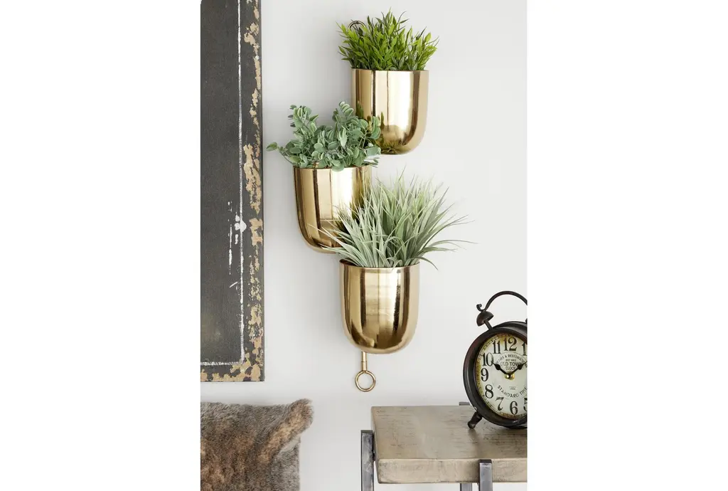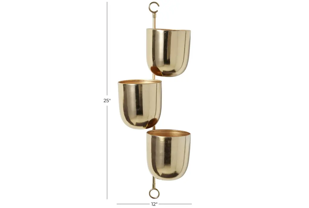12" X 25" Indoor/outdoor Gold Metal Layered Wall Planter