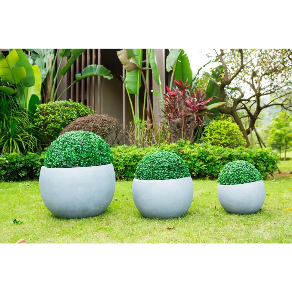 These elegant round planters have authentic concrete finish with visible pores make them beautiful contemporary pieces.The look and feel is true concrete but it weights substantially less than it looks. It also has very smooth finish instead of rough concrete potters you might be used to. The size is very generous and can hold a good amount of plants without looking crowded. Would look great on apartment balcony or large backyard patio. Low bowl planters with smooth lines and a solid charcoal finish that are ideal for endless succulent designs. Place on your patio or throughout your garden to add variety and color. Made of lightweight concrete through an ecofriendly manufacturing process. This composite material has no ruber, plastic, and steel. This material has all the advantages of concrete such as strength, durability, weather and damage resistance. Materials involve cement and weather-resistant fiberglass. This material has strong UV resistant ability and stay well in wind, rain,