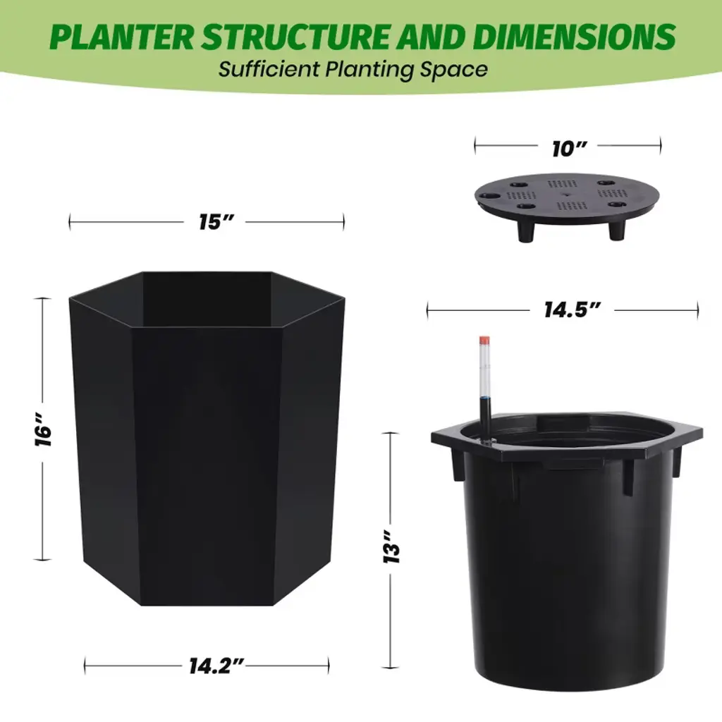 16 Inch Tall Outdoor Planters Set of 2, Self Watering Pots for Indoor Plants with Water Level Monitor & Drainage Hole & Wheels, Large Planter Pots for Garden, Patio, Balcony