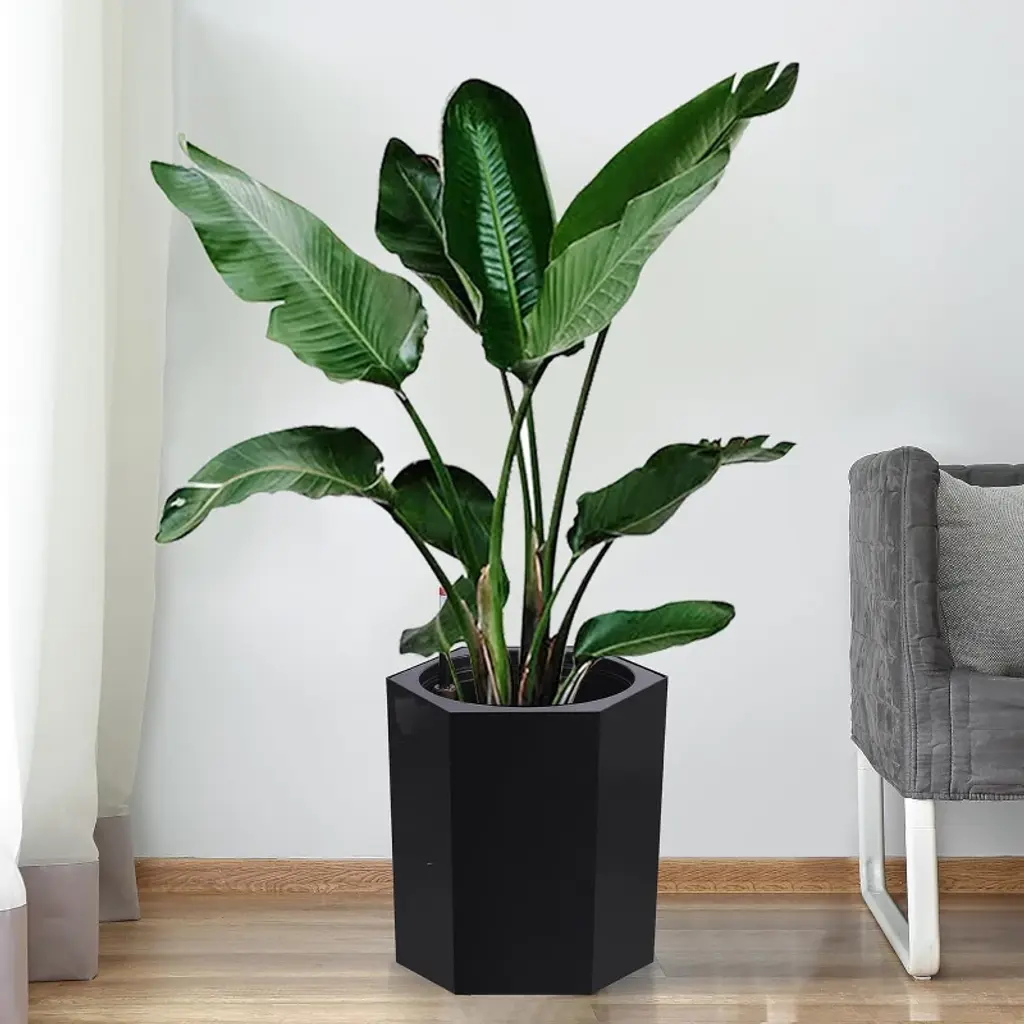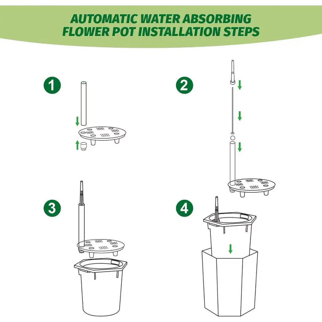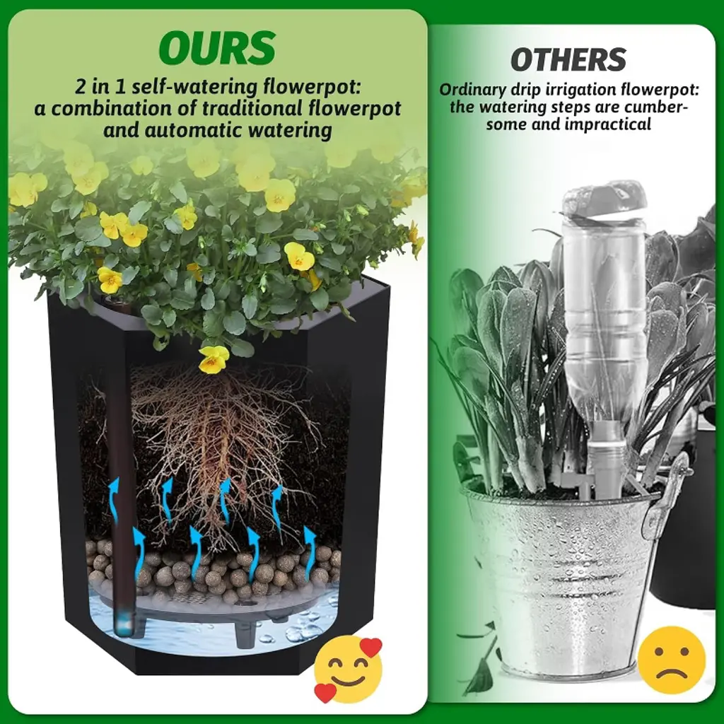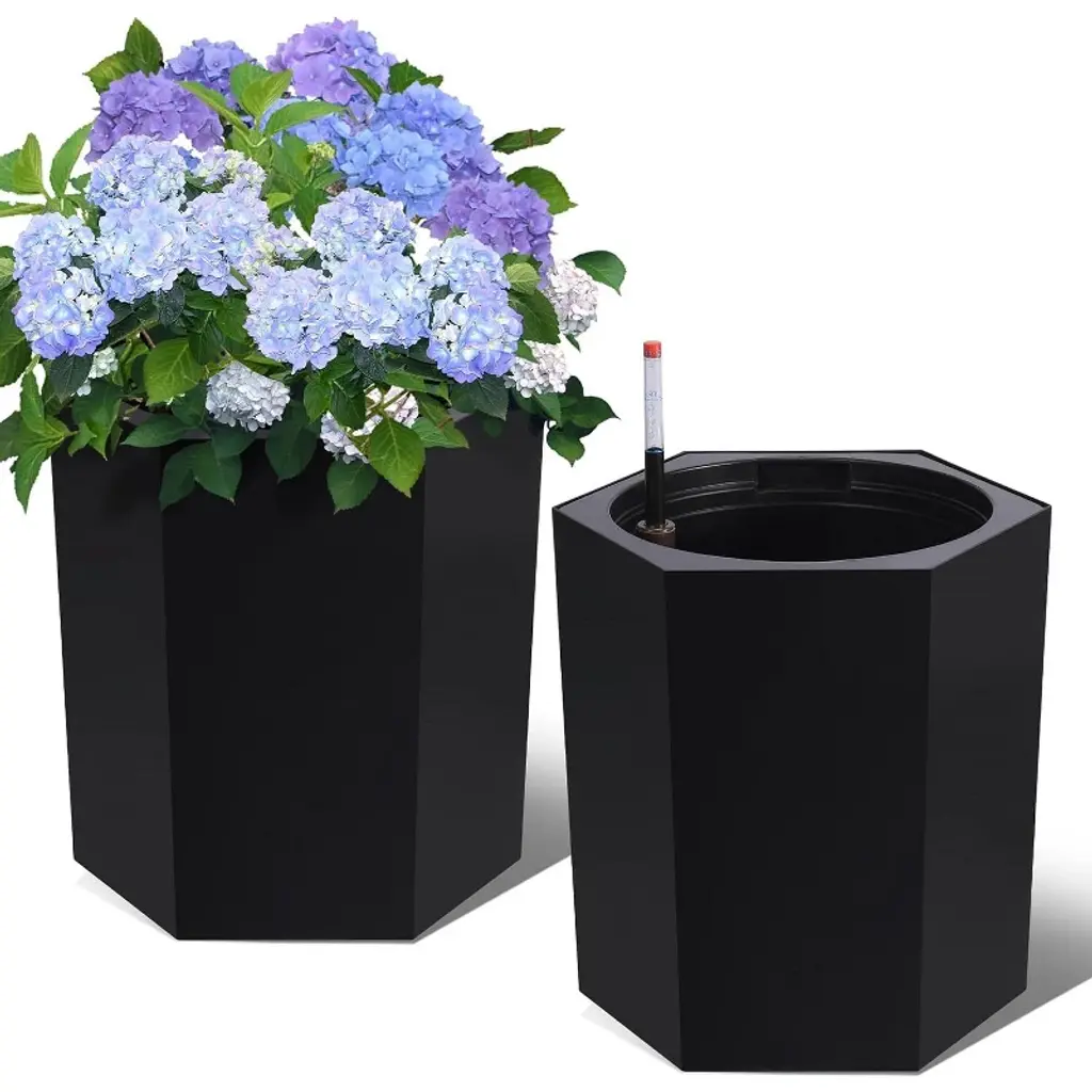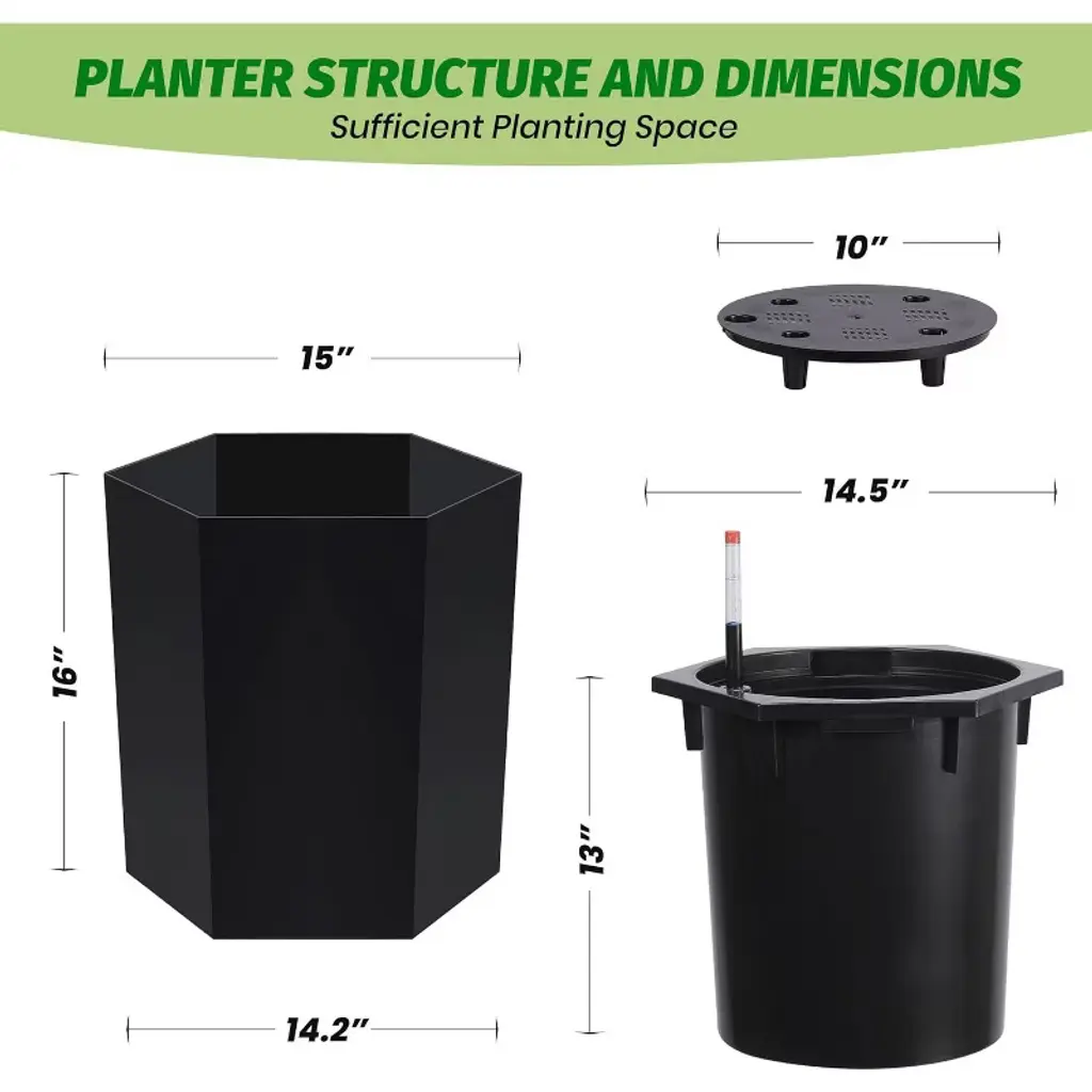 16 Inch Tall Outdoor Planters Set Of 2, Self Watering Pots For Indoor Plants With Water Level Monitor & Drainage Hole & Wheels,black