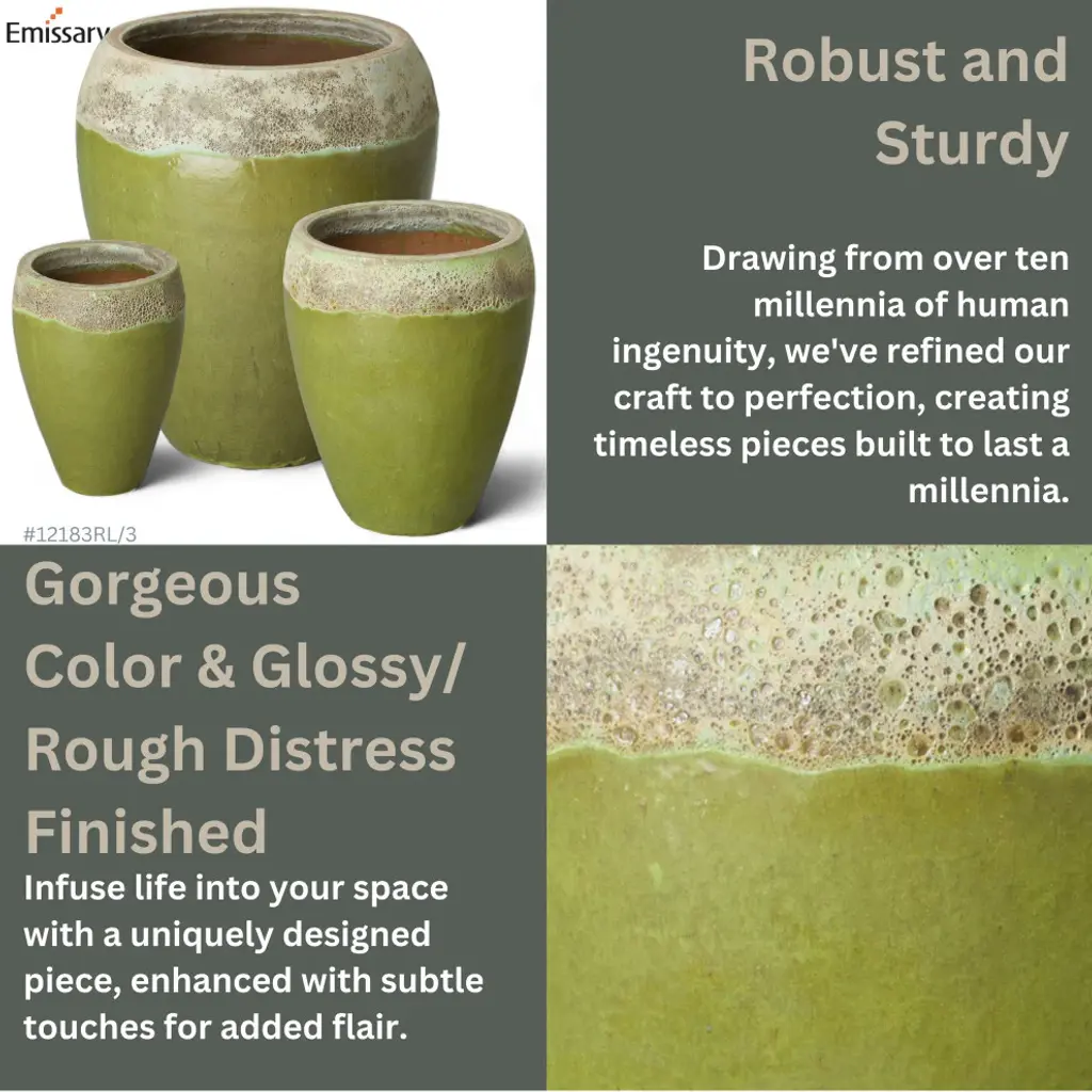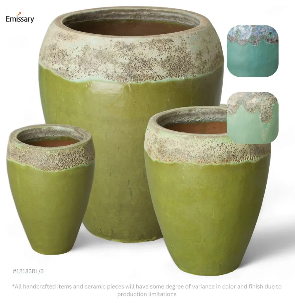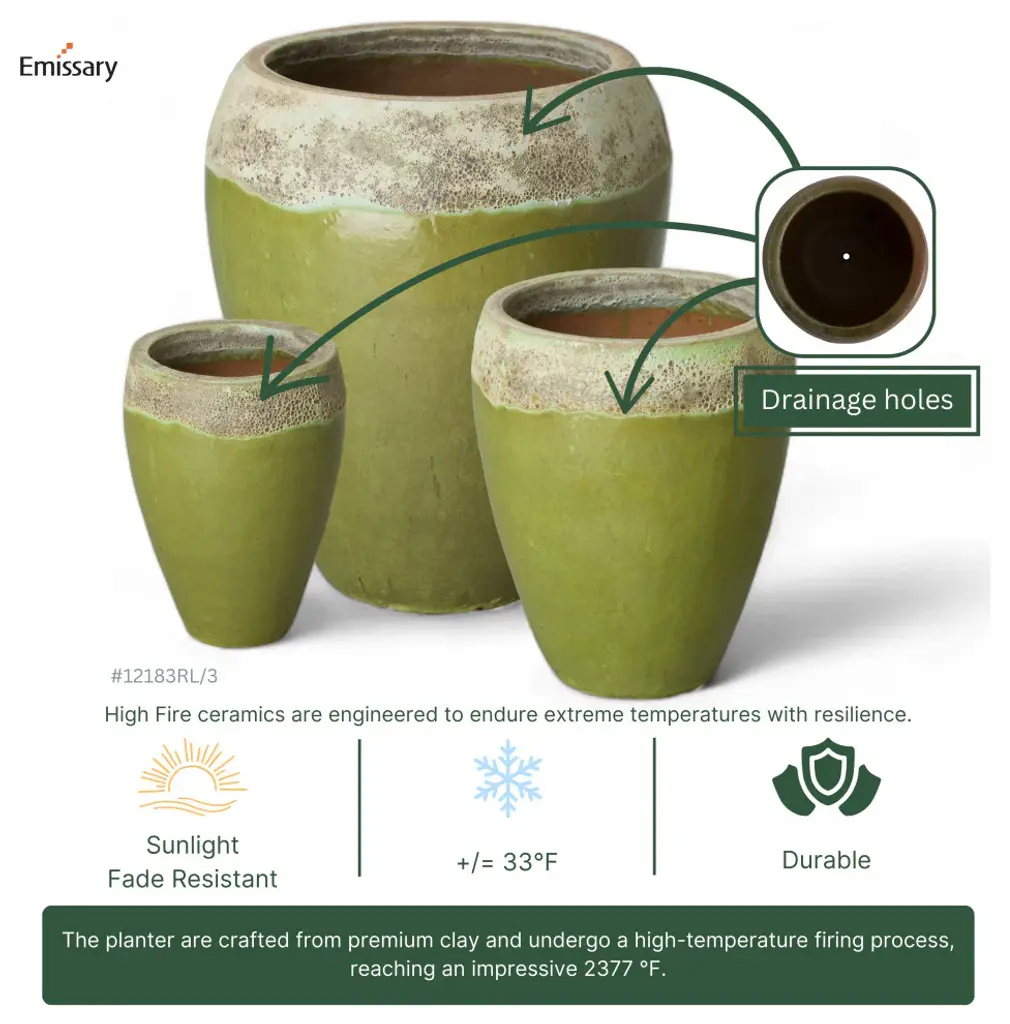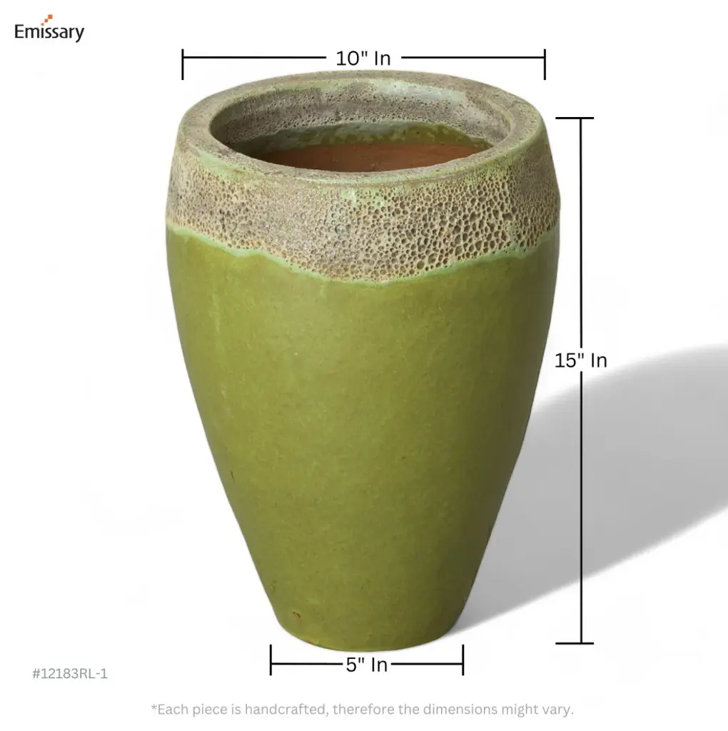 This round planter handcrafted from heavy red clay, perfect for outdoor pieces and finished with a reef spa blue glaze. Our lime glaze is a vibrant shade of green. The planter features a reef-style textured clay around its rim and 1 drainage hole. Accent your home with a classical design that brings rustic elegance to both indoor and outdoor living.