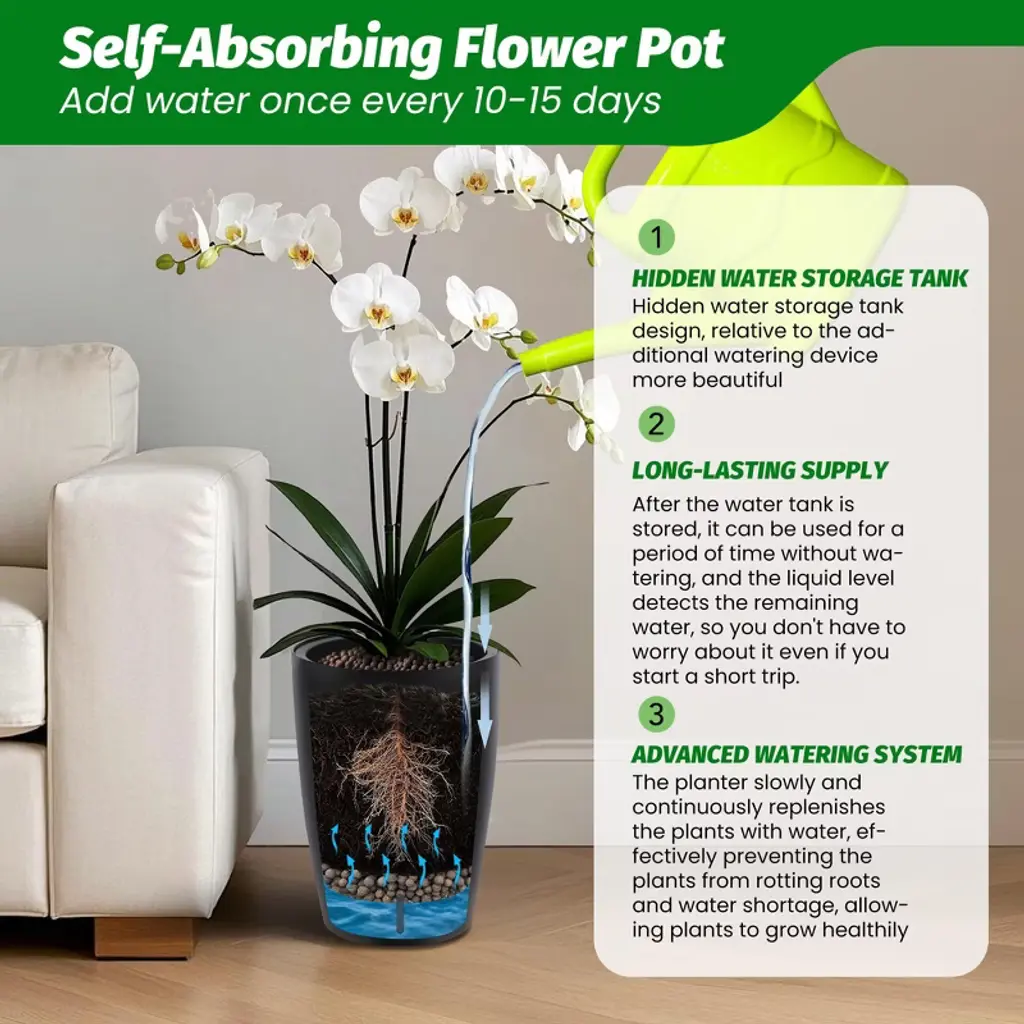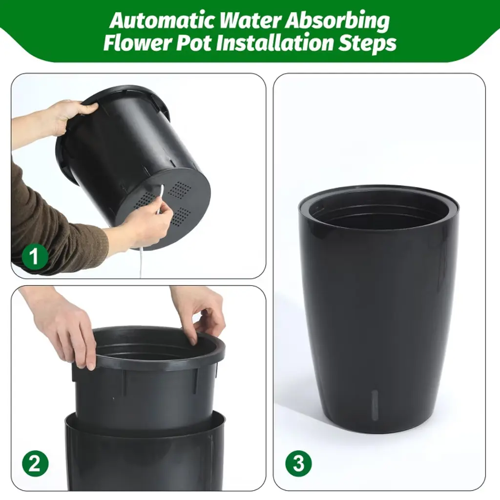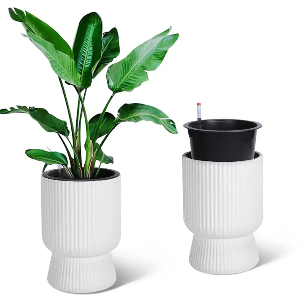 16" Tall Planters Set Of 2, Plant Pots, Self Watering Pots For Indoor Plants, Flower Pots With Built-in Drainage And Visual Water Level Design, Black