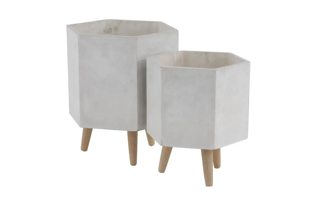 17 Inch Grey Ceramic Planter Set Of 2 | Hexagon