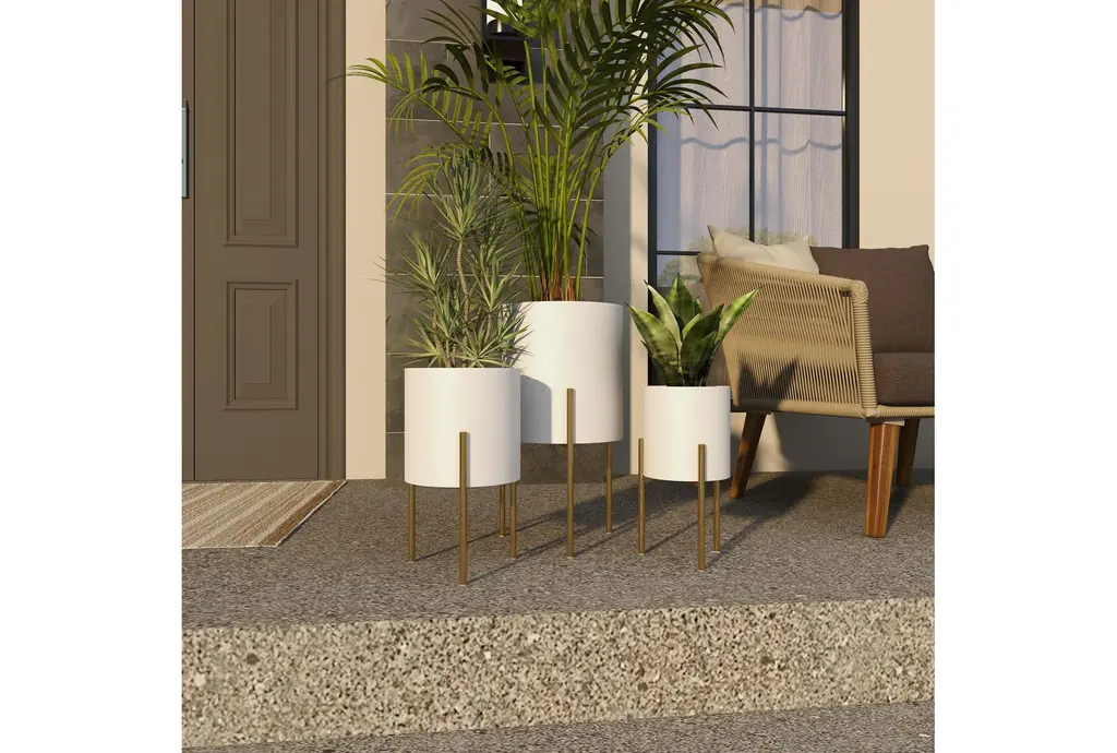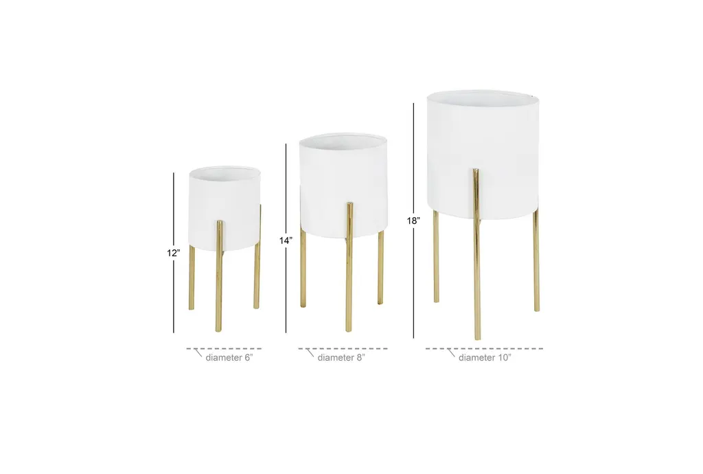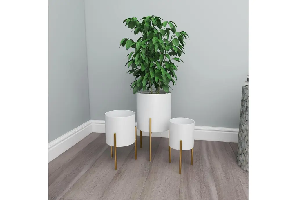 18" 14" 12" White Metal Indoor Outdoor Planter With Removable Stand Set Of 3