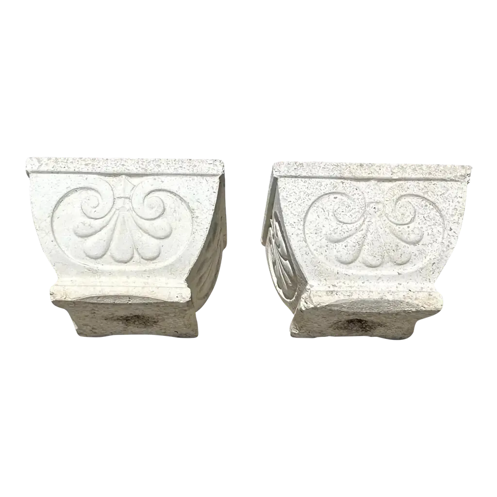 A pair of 1950s concrete planters. There are 4 pairs available. The price is 975 per pair.