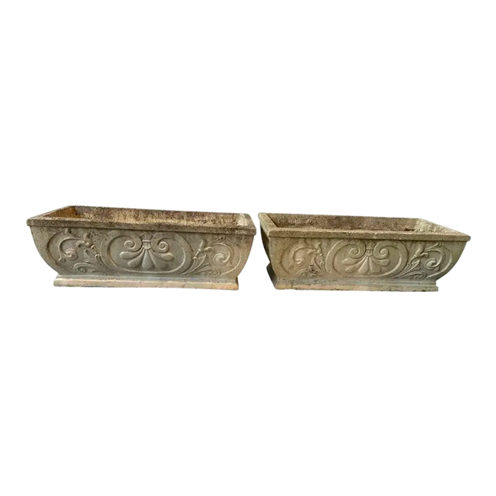 1950s Rectangular Concrete Planters. 5 Pairs Available.