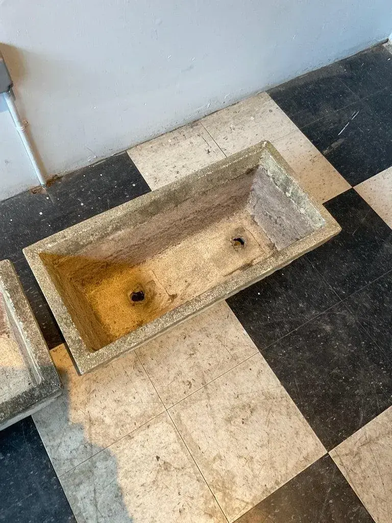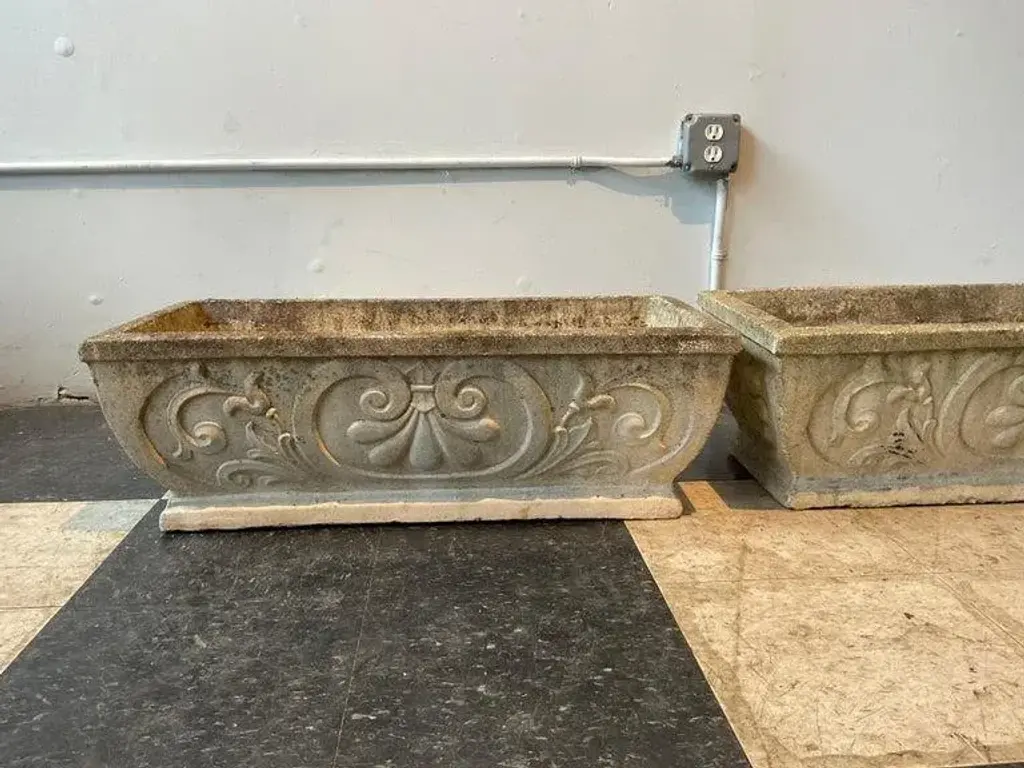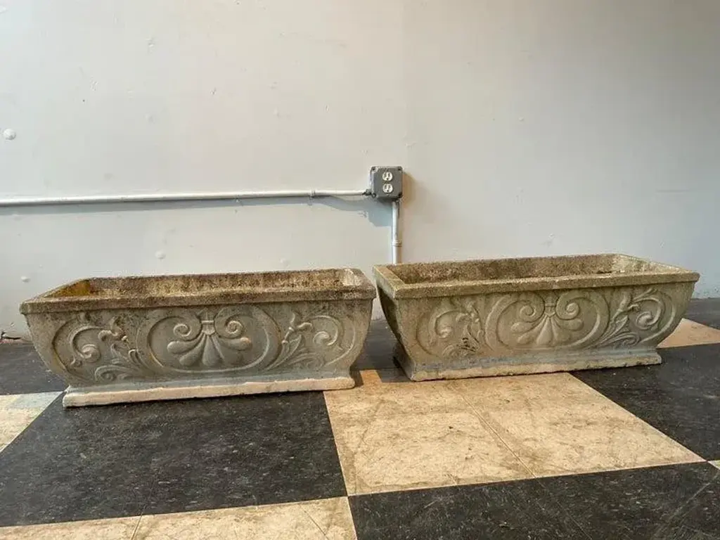 A pair of 1950s concrete planters. There are 4 pairs available. The price is 975 per pair.