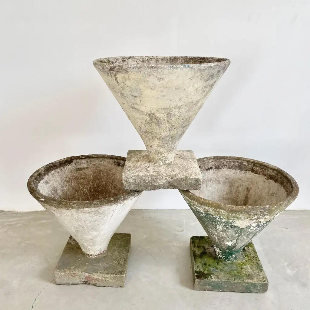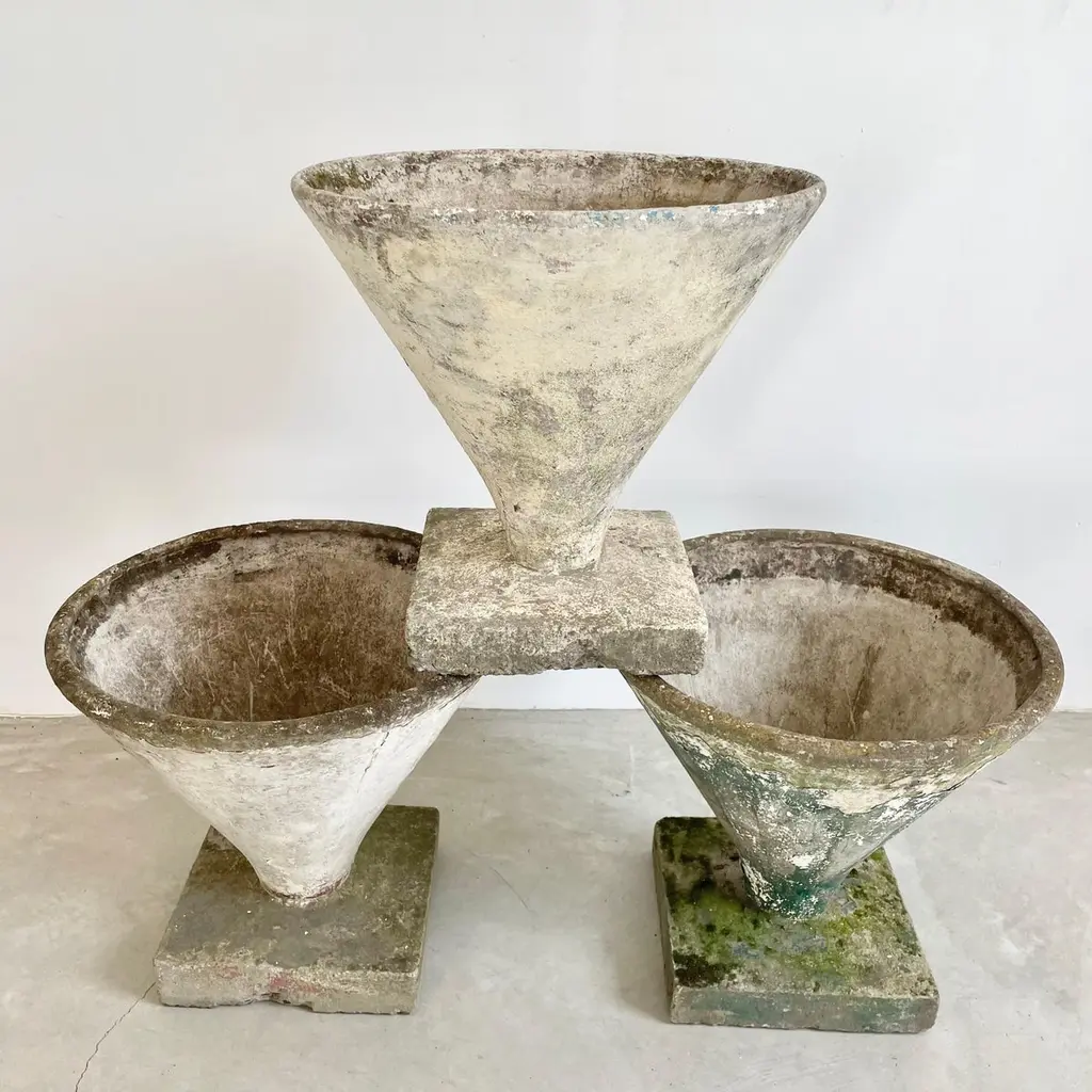 1960s Willy Guhl Concrete Pedestal Cone Planter