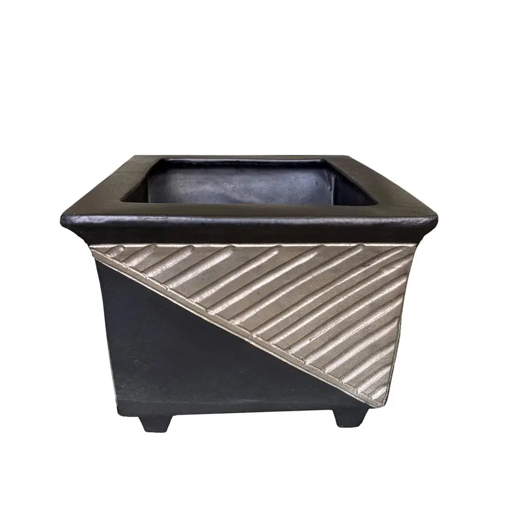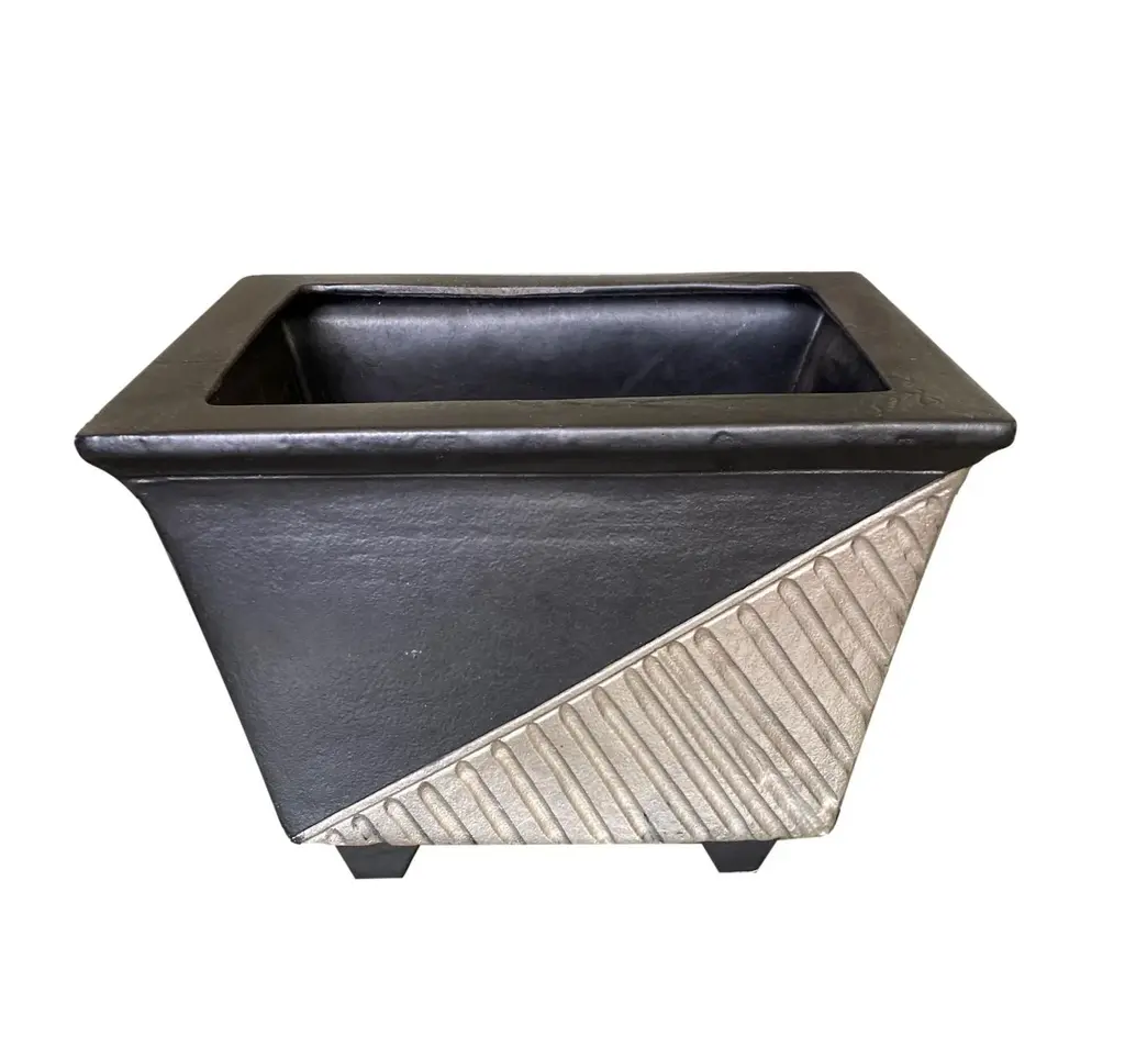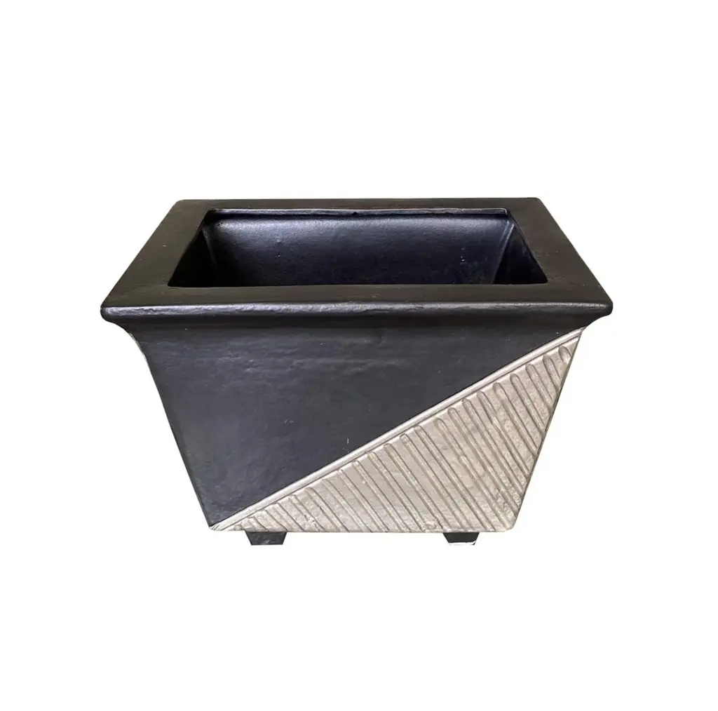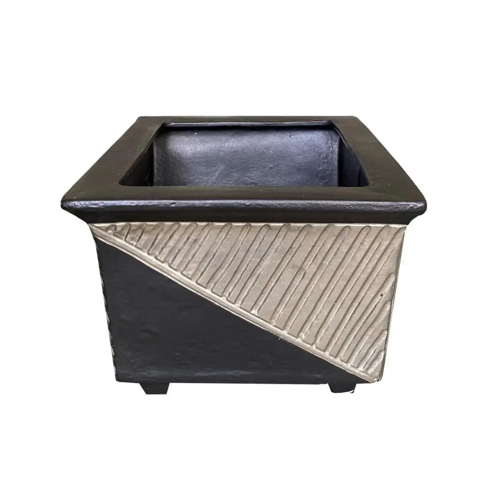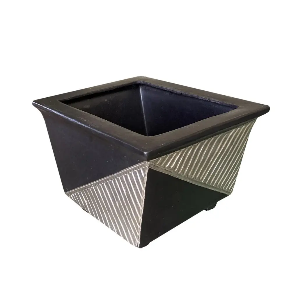 1980s Ron Dier Postmodern Ceramic "Theta" Planter With Matte Black And Platinum Glaze