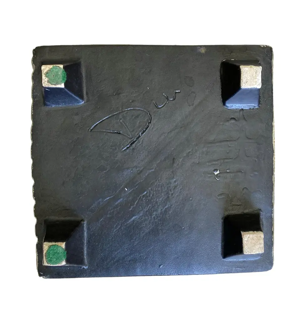A postmodern “Theta” cache pot by Ron Dier from an Indian Wells estate designed by Steve Chase in the late 1980’s. Made of ceramic, they are matte black and detail sections are highlighted with a real platinum glaze. Signed on bottom. Two planters available. Price per planter.
