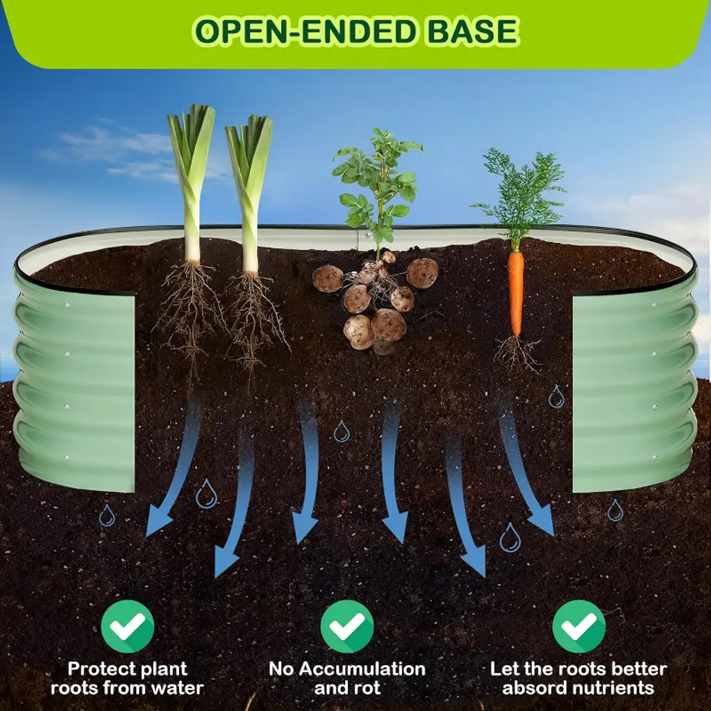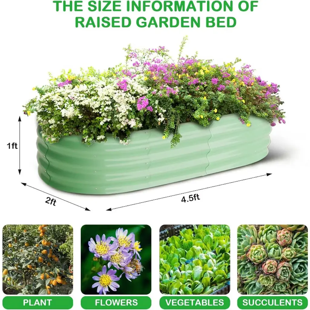 2 Pcs 4.5x2x1ft Oval Raised Garden Bed, Galvanized Raised Beds,Open-Ended Base Metal Raised Planter Beds,Garden Bed Outdoor,Planter Raised Boxes for Vegetables, Flowers,Tool-Free Asse