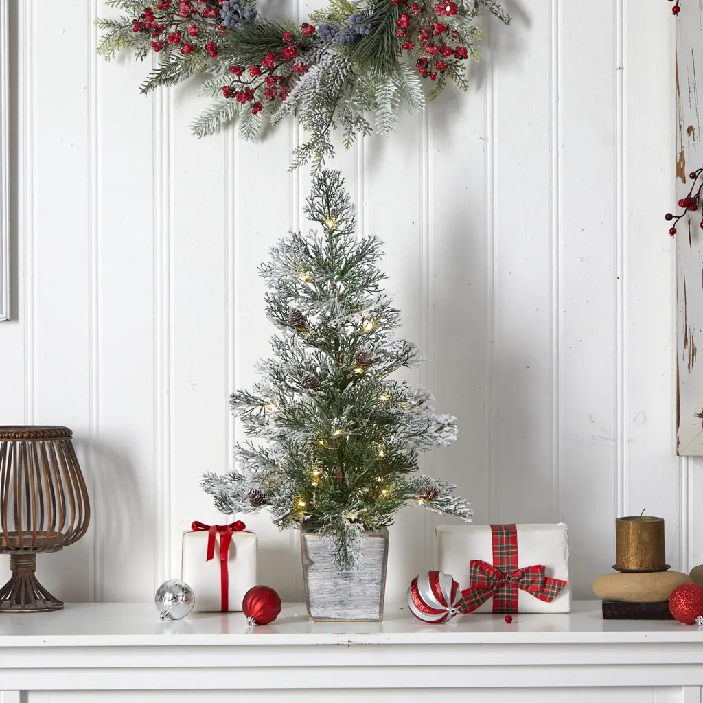 Specifications:Description:Create your own mini Christmas wonderland and rock around this Artificial Christmas Tree. Incredibly lifelike textured branches mimic real evergreens for a sturdy construction. This pre-lit artificial Christmas tree comes with lights and has upward-sloping branches – allowing you to decorate with mini-ornaments of your choice easily. Standing 2' from a decorative planter, this tree requires zero maintenance, just some fluffing, and shaping that’s easy with the bendable branches! Decorate as a trio with other trees or in your kids’ room, kitchen, apartment or other compact spaces.