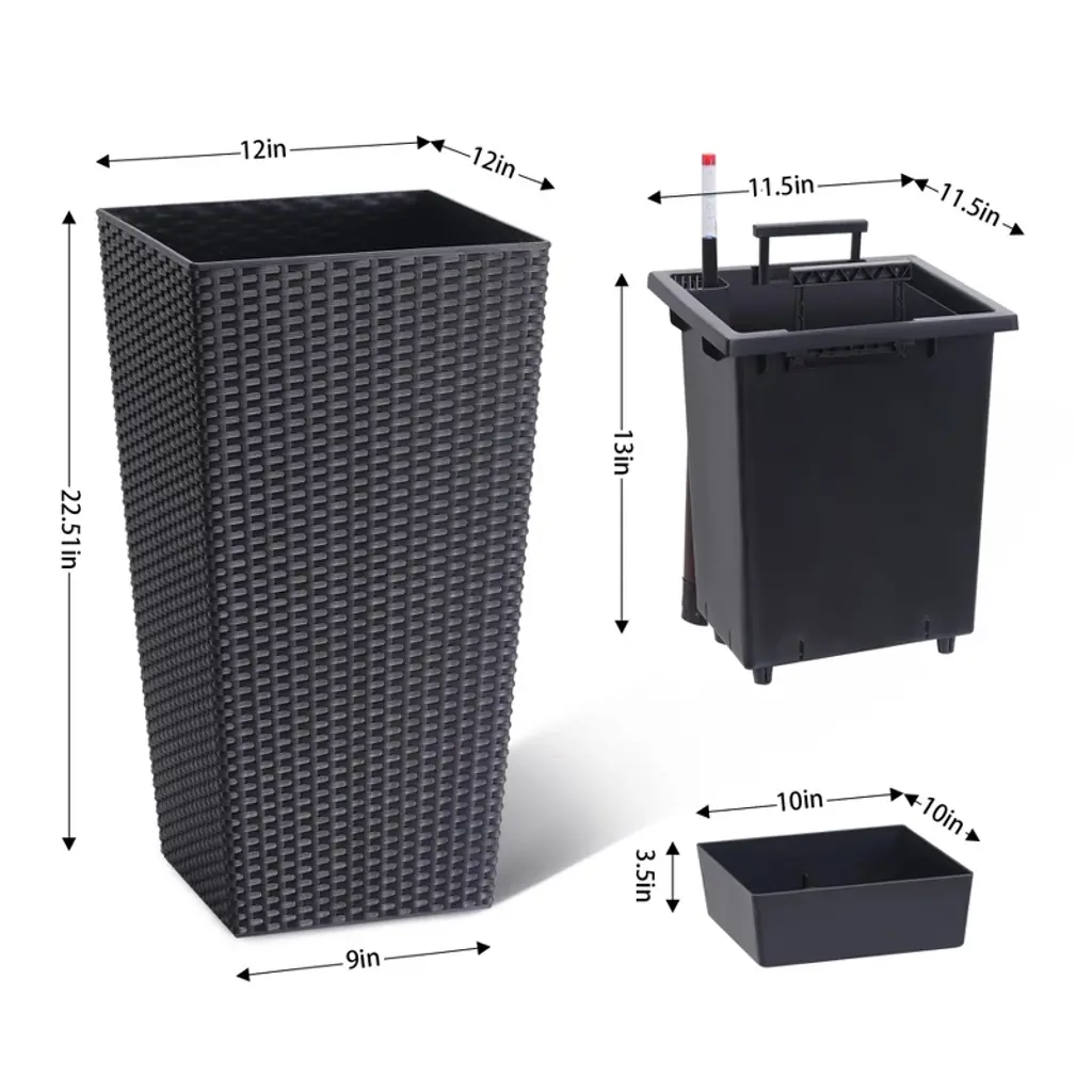 22.5 Inch Tall Outdoor Planters (Set Of 2) With Removable Liners & Drainage Holes, Durable Weatherproof Plant Containers For Patio, Porch