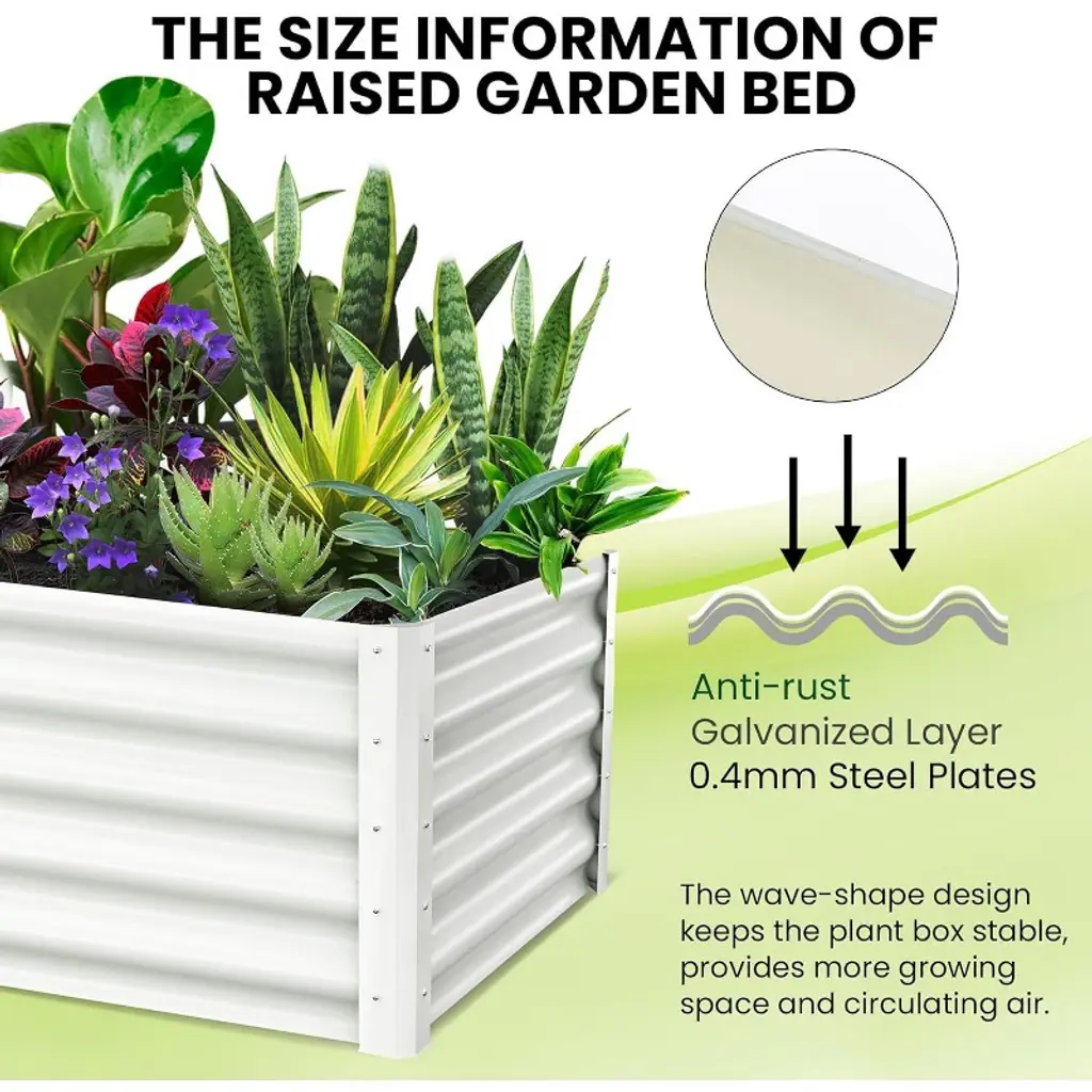 This outdoor raised garden bed is made of durable galvanized metal with double anti-corrosion protection. The rectangular structure design is beautiful and elegant, and the interface can withstand high pressure to ensure that it will not loosen in the long term.