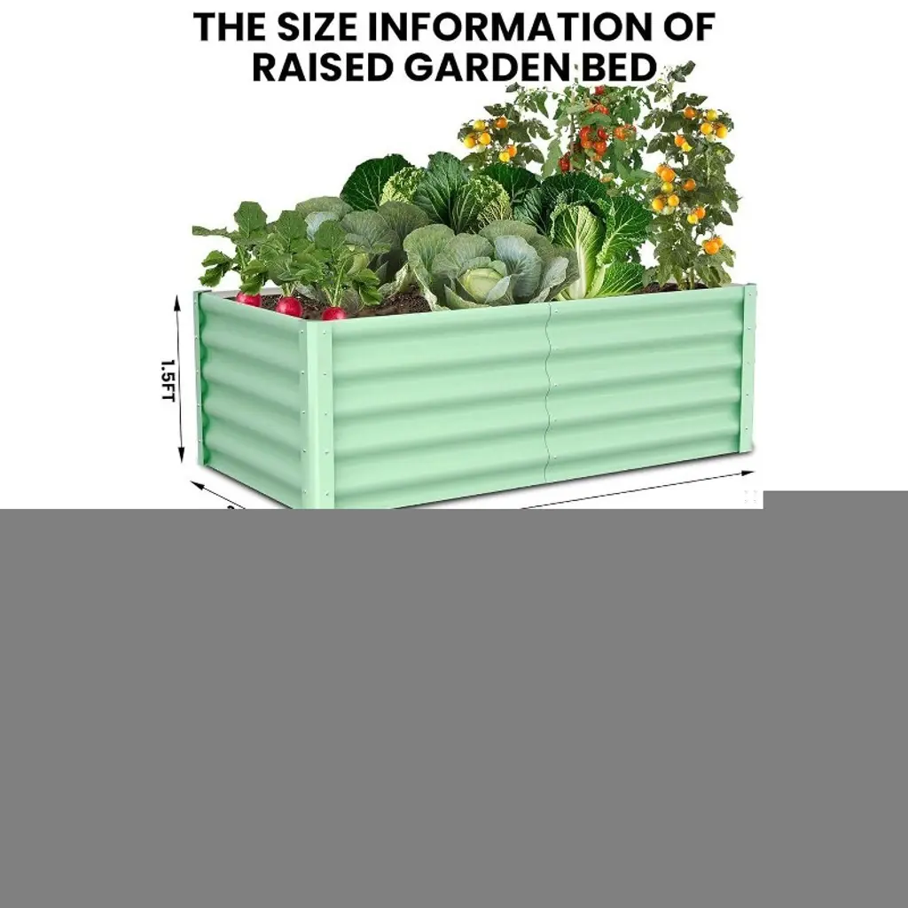2Pcs Galvanized Raised Garden Bed, Outdoor Large Planter Raised Beds Open Base With Safety Edge And Glove Forflowers Ground Planter, 6X3x1.5ft Green