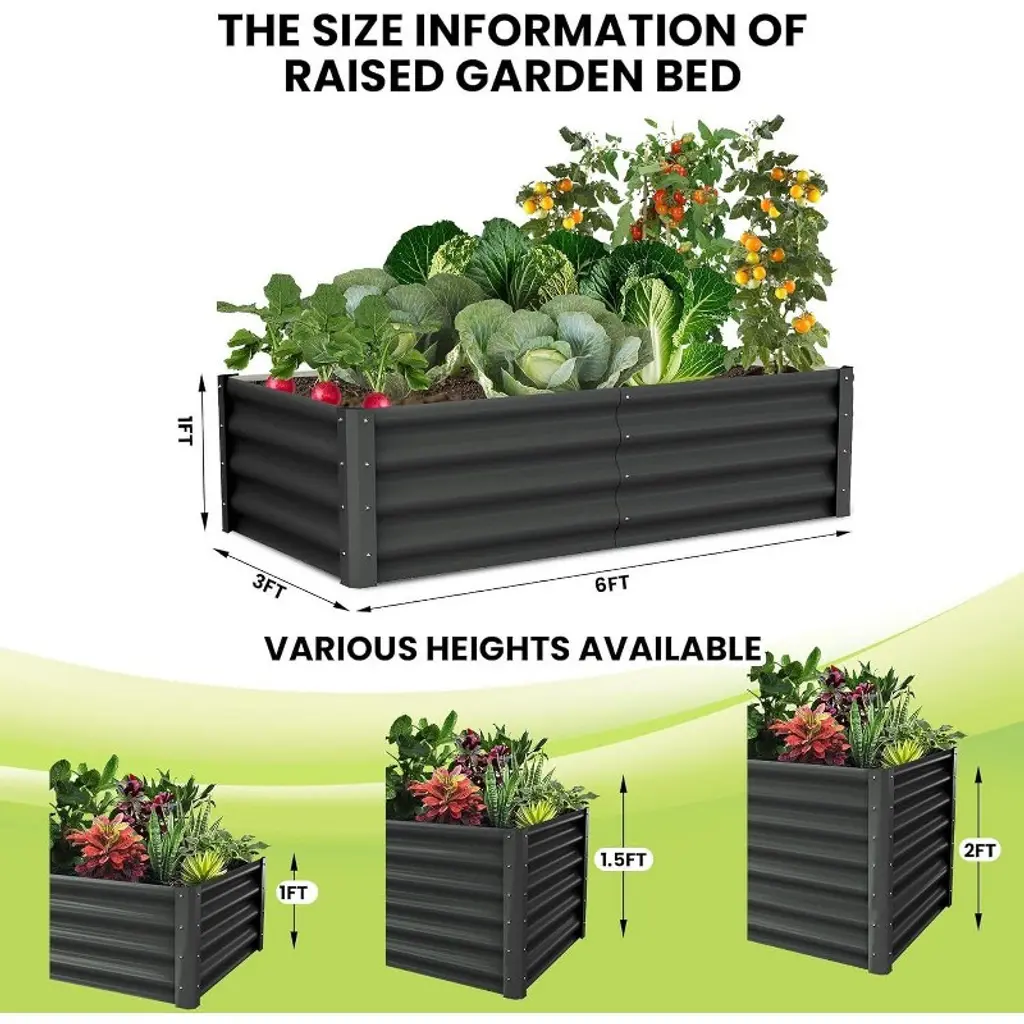 This outdoor raised garden bed is made of durable galvanized metal with double anti-corrosion protection. The rectangular structure design is beautiful and elegant, and the interface can withstand high pressure to ensure that it will not loosen in the long term.