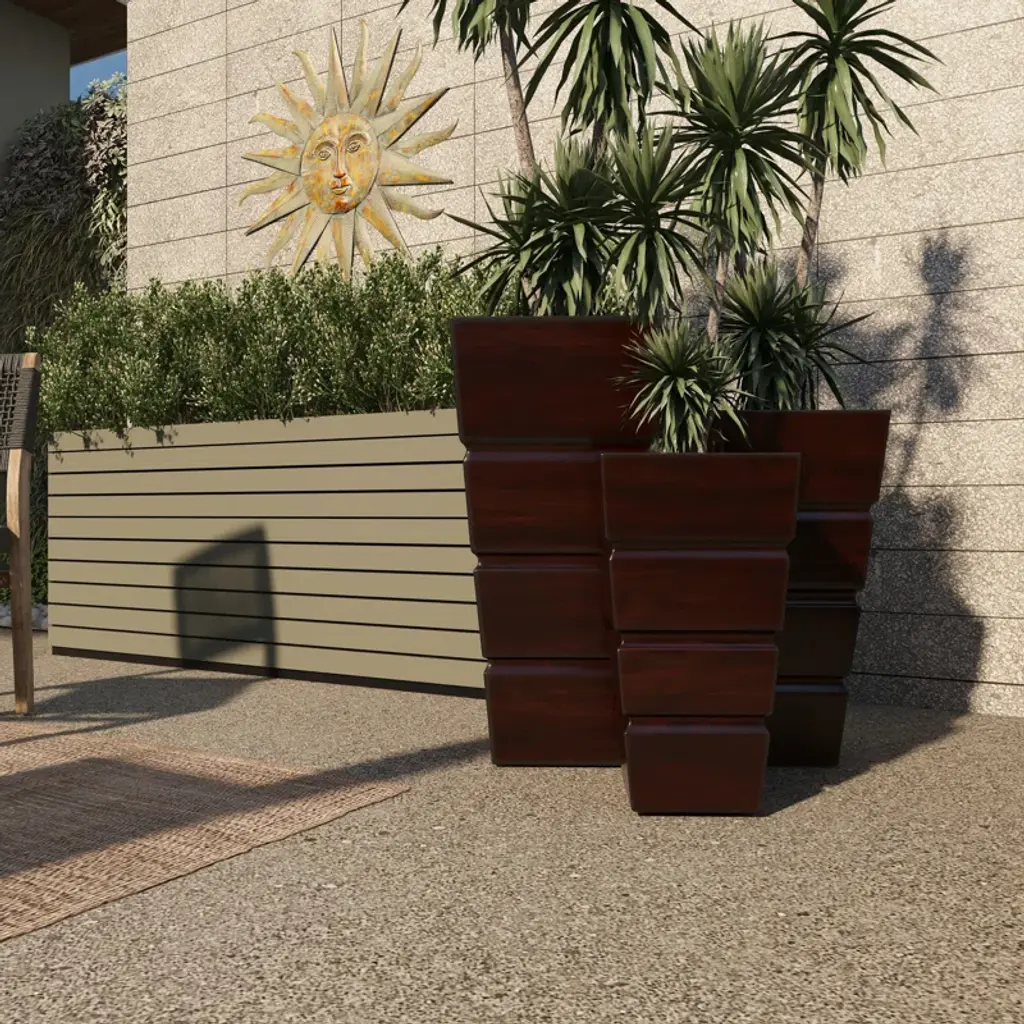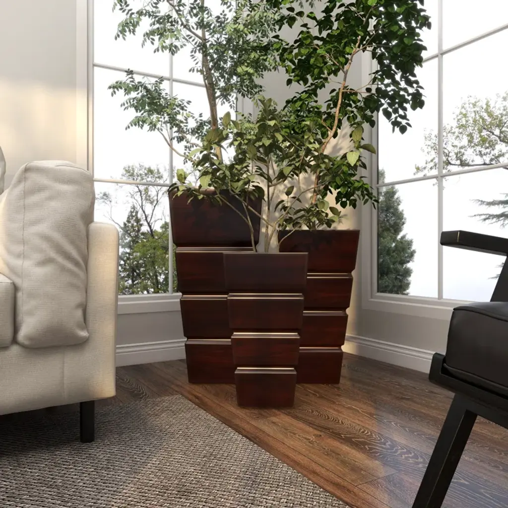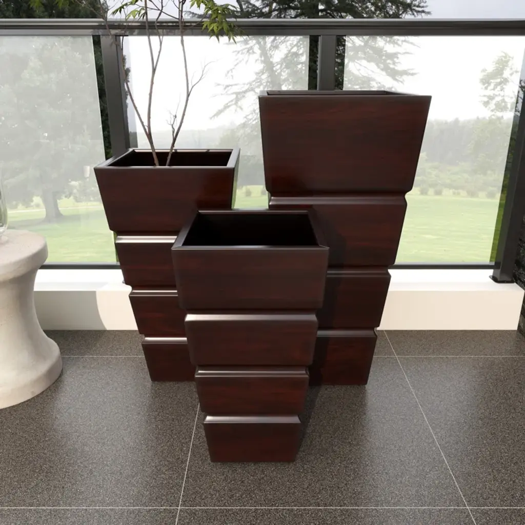 These floor planters were crafted with wide receptacles and deep settings that are meant to stylishly display herbs, shrubs, indoor plants, or cacti. This item ships in 1 carton. Please note that this item is for decorative purposes only and is not food safe. Suitable for indoor and outdoor use. The maximum weight limit is 20 lbs. Planters do not have drainage holes but they are not watertight. This planter comes in a set of 3. Rustic style.