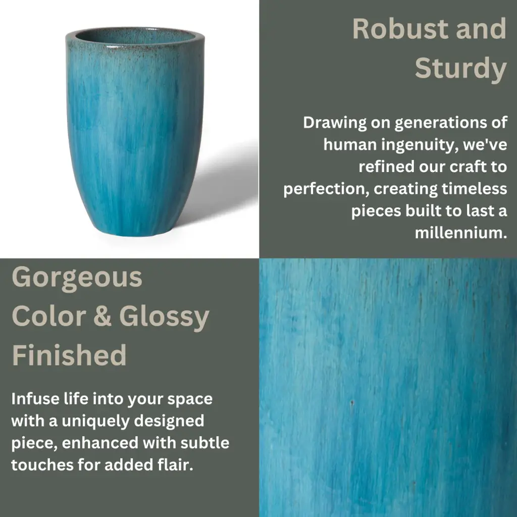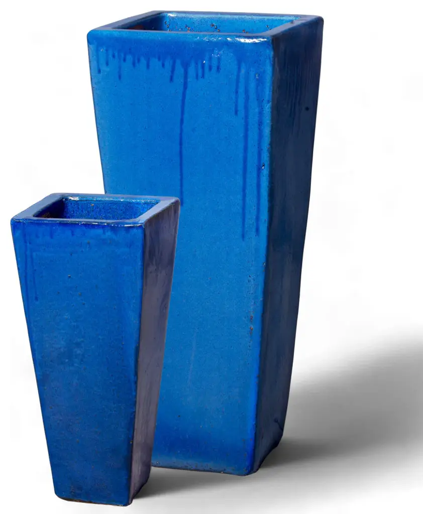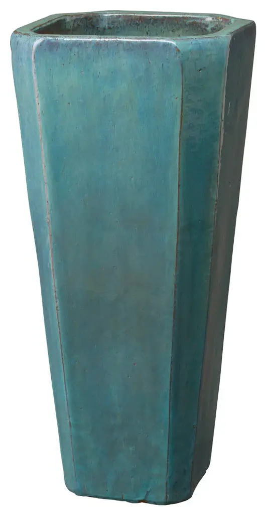 This Tall Square planter is crafted of ceramic with a Teal glaze. Suitable for outdoor and indoor use. Adds color and texture to your home or garden.