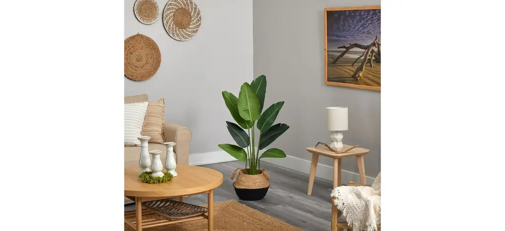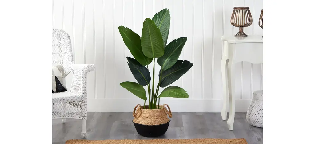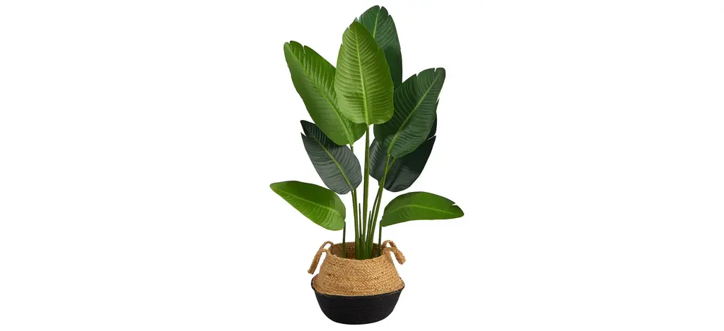 Modern yet chic, fill a bare corner in your space with this 4' Travelers Palm Artificial Tree in Woven Planter. Variegated large palm fronds have intricate detailing throughout that are inspired by nature. Assembled from high-quality materials, inject some color in low light areas or spaces in need of some life. Customize to fit in your room by bending the branches. Standing 4', house in any area. Add to a home office, living room or bedroom. Artificial trees are manufactured using synthetic materials, such as polyester material or plastic, and are well designed and constructed to be life-like in appearance. Your artificial tree will look beautiful for years to come; simply wipe clean with a soft dry cloth when needed.