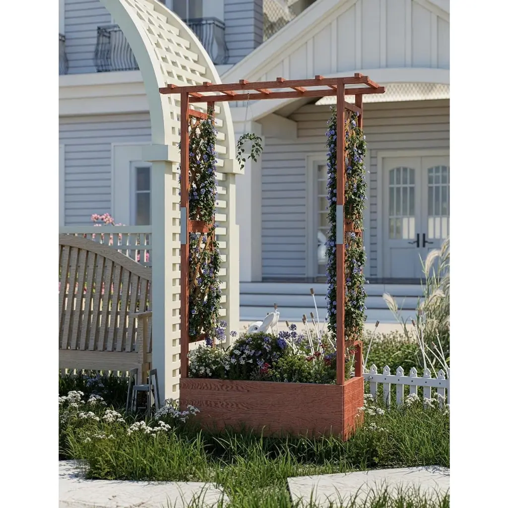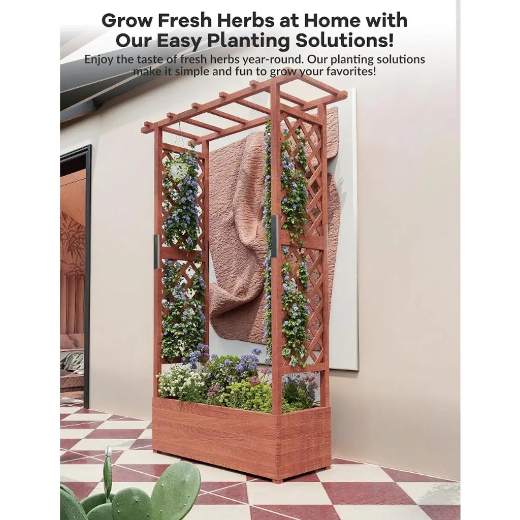 43x17x72ft Arched Trellis Garden Planter With Hanging Roof, Features Side Supports & 4 Drainage Holes, Elevated Wooden Raised Bed For Climbing Vines