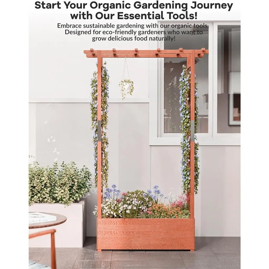 This elevated planter combines a roomy planting bed with an arched roof trellis and dual side supports, creating the ultimates space-saving garden solution. Perfect for growing vegetables, herbs and climbing vines together. The decorative hanging roof accommodates lights or planters, blending practical gardening with charmings outdoor decor in one stylish unit.