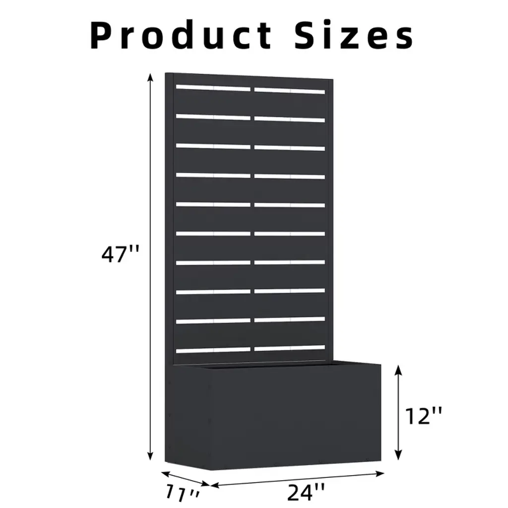 Multi Functional Use Metal Planter Box Versatile design: This versatile metal planter box functions as an outdoor raised garden bed, a flower trellis, and a privacy screen, perfect for growing climbing plants, vegetables, and vines. It’s an ideal space-saving solution, while adding tasteful privacy to any patio, lawn & garden.