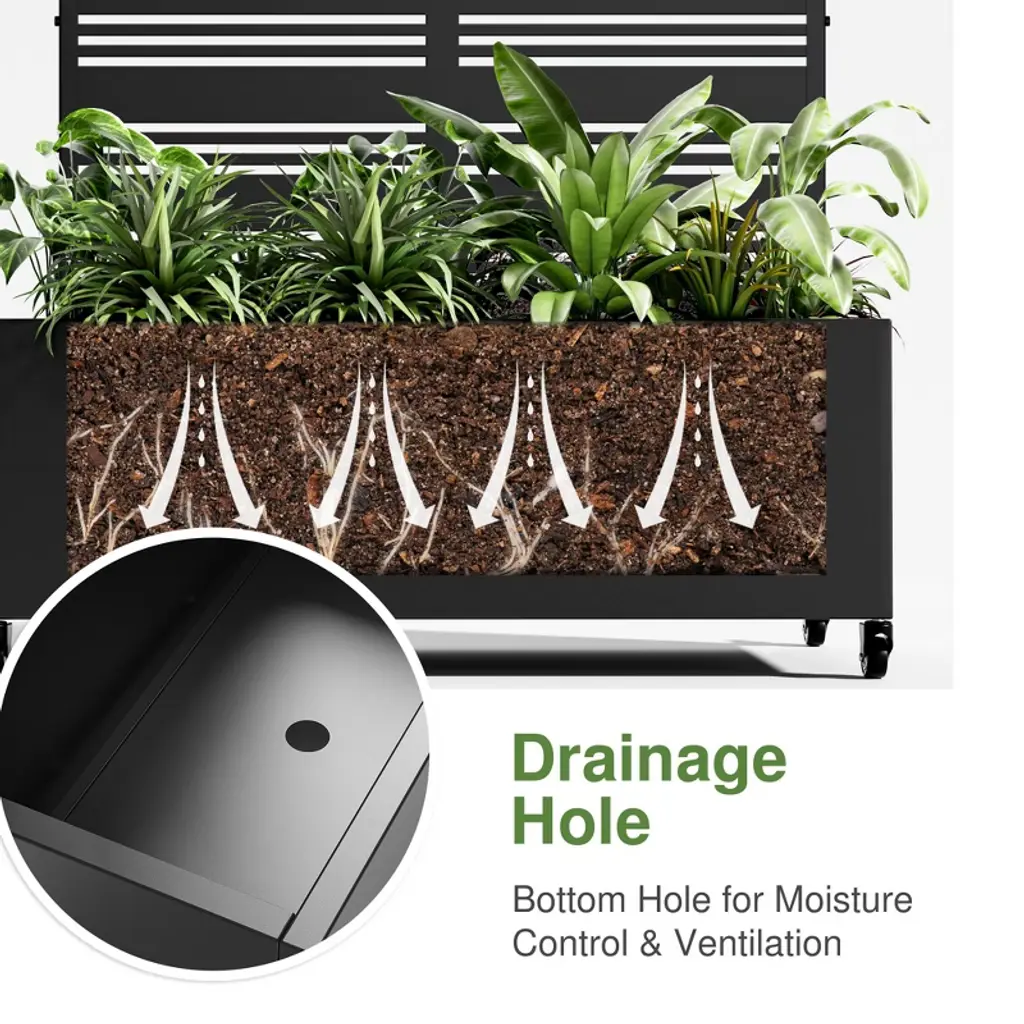 Multi Functional Use Metal Planter Box Versatile design: This versatile metal planter box functions as an outdoor raised garden bed, a flower trellis, and a privacy screen, perfect for growing climbing plants, vegetables, and vines. It’s an ideal space-saving solution, while adding tasteful privacy to any patio, lawn & garden.