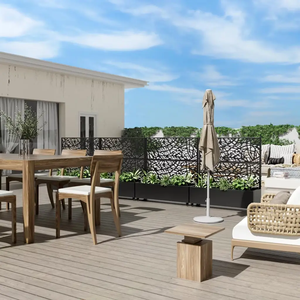 Multi Functional Use Metal Planter Box Versatile design: This versatile metal planter box functions as an outdoor raised garden bed, a flower trellis, and a privacy screen, perfect for growing climbing plants, vegetables, and vines. It’s an ideal space-saving solution, while adding tasteful privacy to any patio, lawn & garden.
