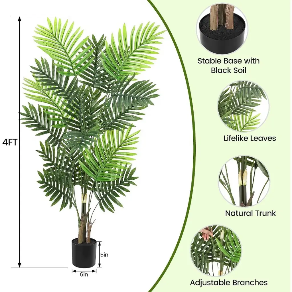 4Ft Artificial Palm Tree, Fake Palm Trees With Planter, Faux Palm Plants For Home Office Living Room Decor