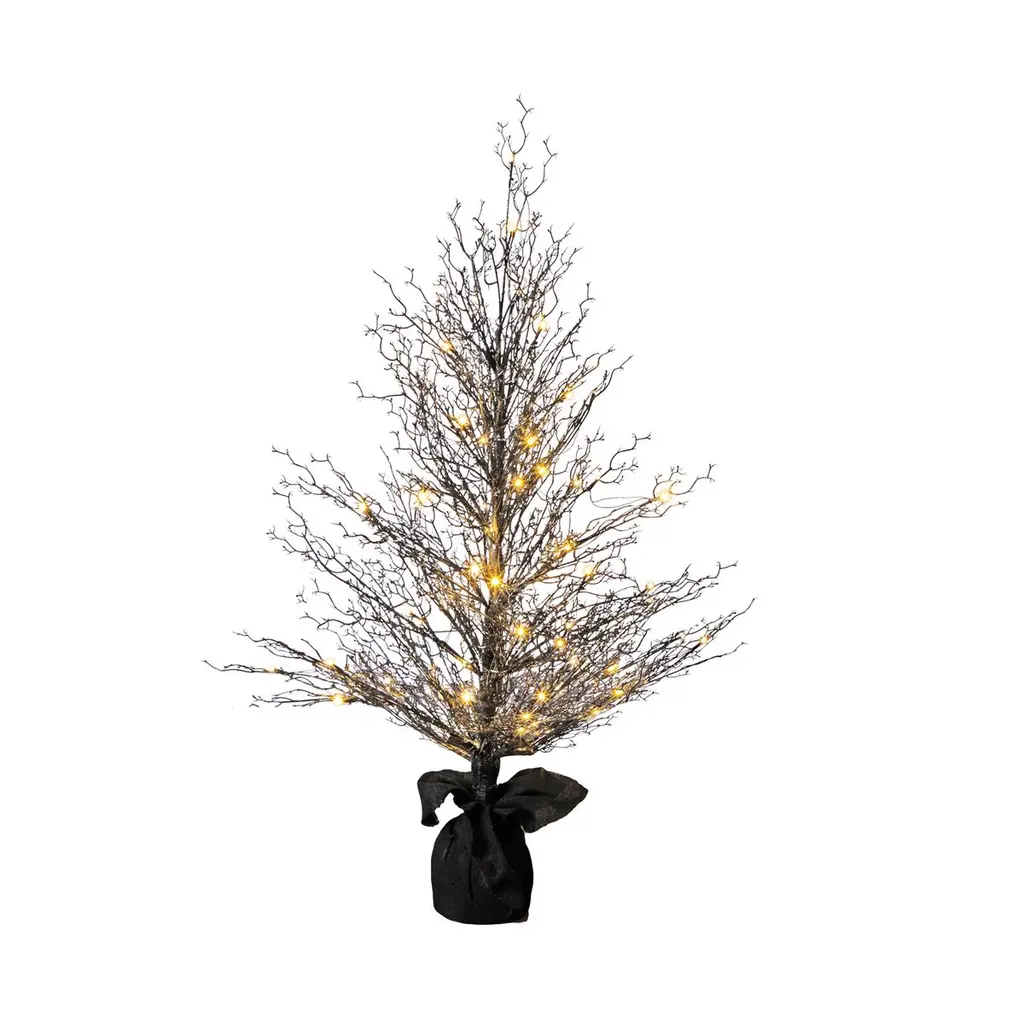 Halloween doesn't have to be scary. Make it stylish with the Halloween twig tree. Inspired by nature, feel like you're walking along Salem's picturesque autumn season on a crisp day. Crafted with attention to detail, the tree has naturally occurring details throughout and bendable branches you can shape for a custom look. The true show begins with the 63 energy-efficient LED lights accented throughout the silhouette, delivering a cozy feeling. Standing 4' from a trendy burlap, display in any area needing holiday cheer. For added fun, decorate with pumpkins, bats, wreaths and more.