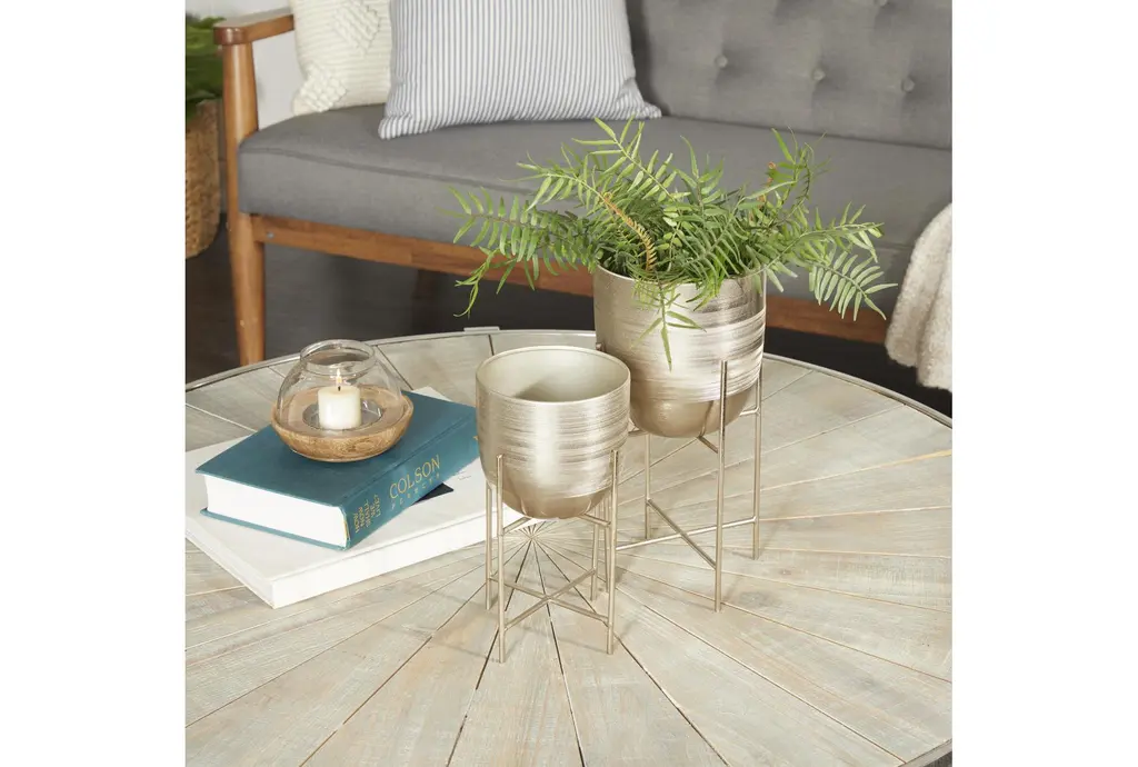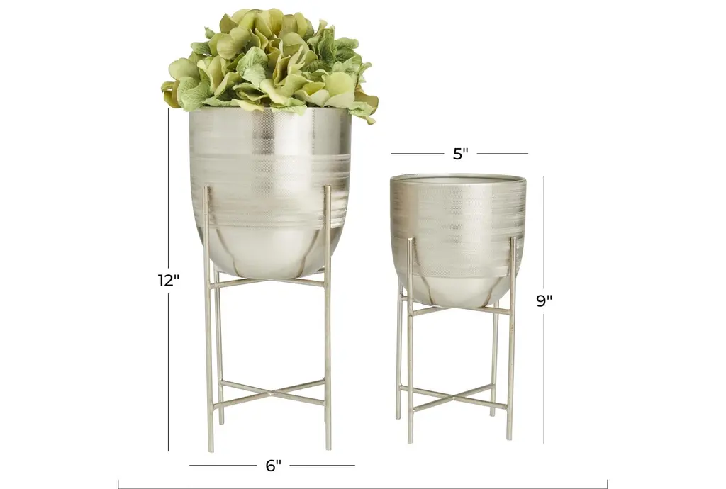 6" 5" Silver Metal Indoor Outdoor Planter With Removable Stand Set Of 2