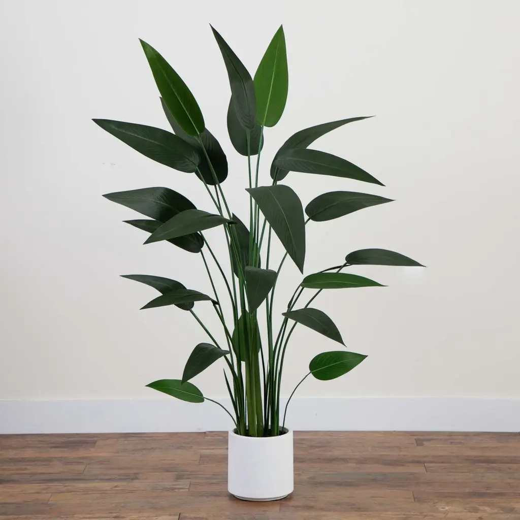 Take a trip to the tropics without leaving your home with the artificial sky bird tree. The long fronds with natural details, inspired by Florida's coastline, descend from a realistic trunk. Crafted from high-quality materials, bend the branches to fit your space. This plant stands 5.5’ tall, making it perfect for any space. Whether you're looking to add a touch of nature to your living room, create a tranquil atmosphere in your bedroom, or bring tropical vibes to your office, the artificial sky bird tree is a versatile decor piece that can enhance any room setting. Place it next to a cozy reading nook, use it as a focal point in an empty corner, or even position it near a window to create the illusion of an outdoor oasis.