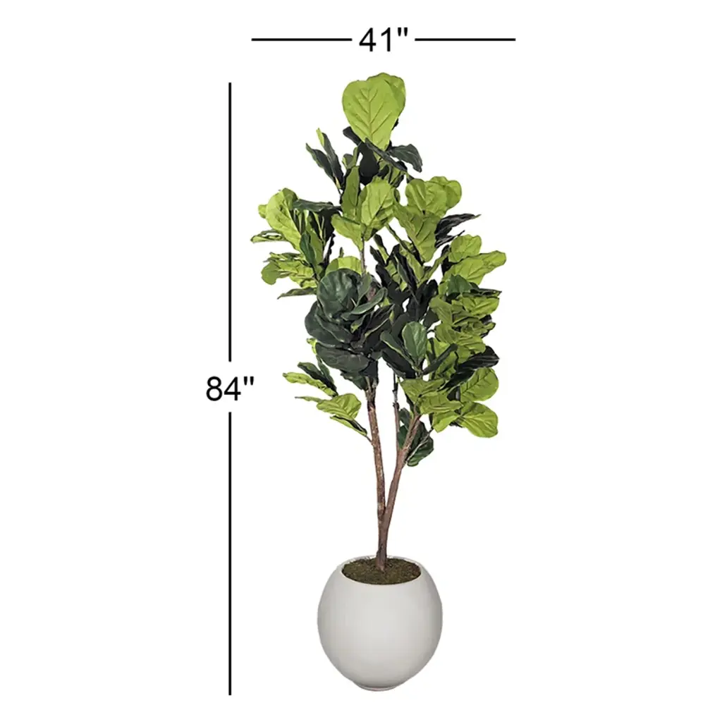 7' Natural Touch Fiddle Leaf Fig Tree In White Porter Planter