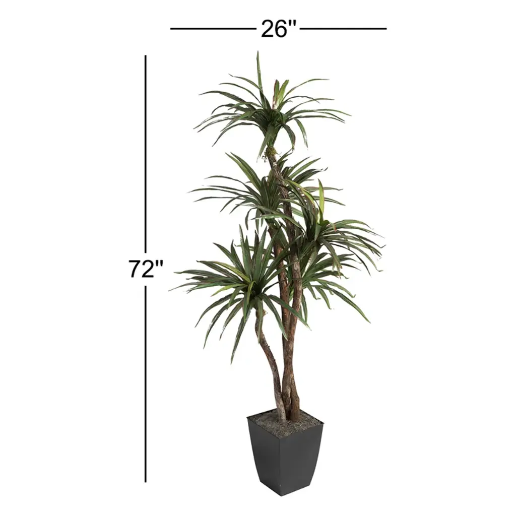 A well-placed planter with faux greens instantly brings your home to life with the benefits of being low-maintenance and allergy-free. This faux planter features a Dracaena Tree in a square metal planter that adds contemporary appeal to your room. The large; rich green leaves provide lush foliage and modern appeal to your current aesthetic. Measuring 26 W x 26 D x 72 H"; this floor planter will become the focal point of an entryway or add fullness to space next to an armchair.