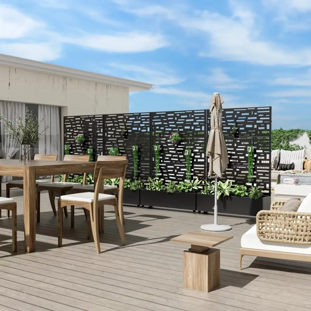Multi Functional Use Metal Planter Box Versatile design: This versatile metal planter box functions as an outdoor raised garden bed, a flower trellis, and a privacy screen, perfect for growing climbing plants, vegetables, and vines. It’s an ideal space-saving solution, while adding tasteful privacy to any patio, lawn & garden.
