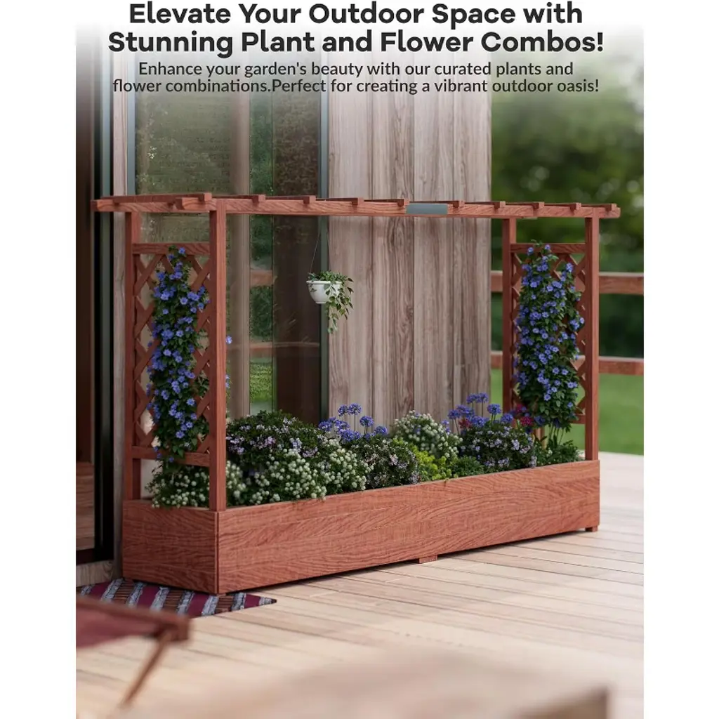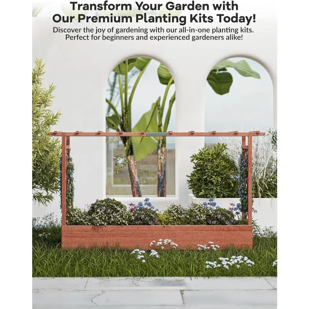 This elevated planter combines a roomy planting bed with an arched roof trellis and dual side supports, creating the ultimates space-saving garden solution. Perfect for growing vegetables, herbs and climbing vines together. The decorative hanging roof accommodates lights or planters, blending practical gardening with charmings outdoor decor in one stylish unit.
