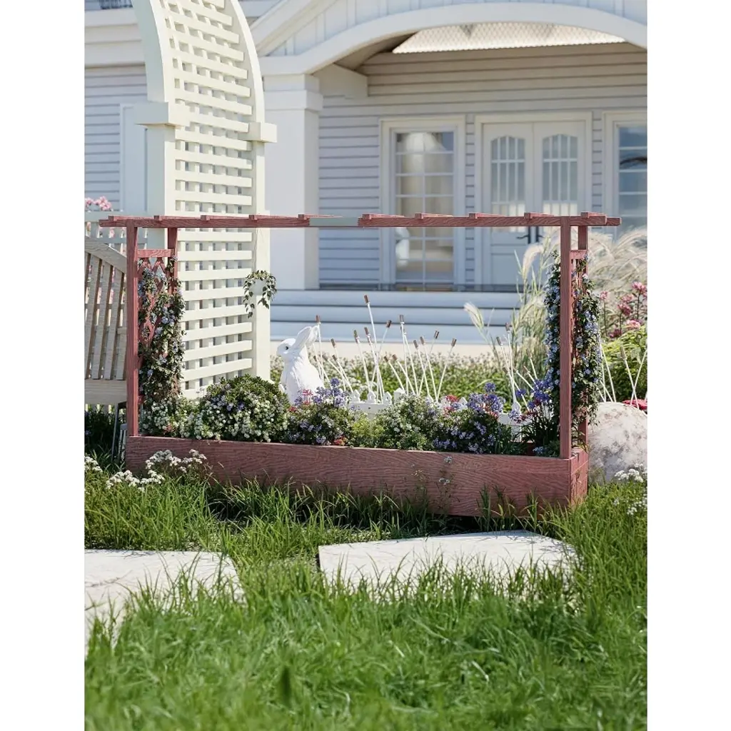 78x17x44ft Arched Trellis Garden Planter With Hanging Roof, Features Side Supports & 4 Drainage Holes, Elevated Wooden Raised Bed For Climbing Vines