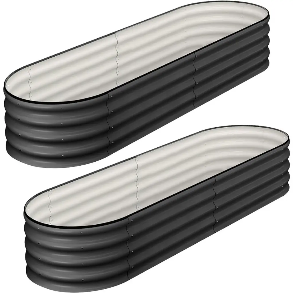 The Acekool Raised Garden Beds create organized growing spaces for vegetables or flowers. Each set includes two oval planters for versatile garden layouts. The open-bottom design works with existing soil. Features include tool-free assembly and reinforced edges. The protective coating helps prevent rust. These beds fit well in yards or patios. Each planter measures 4.5' long x 2' wide x 1.5' tall.