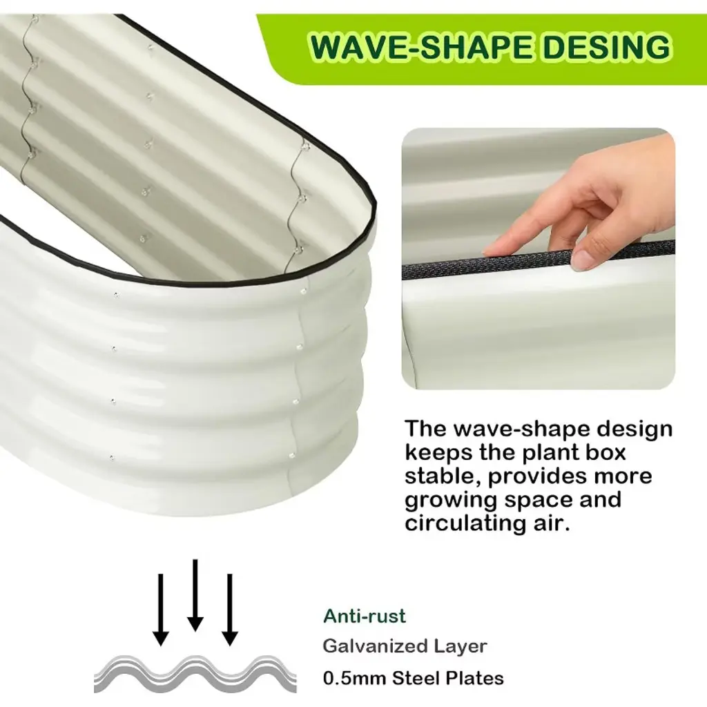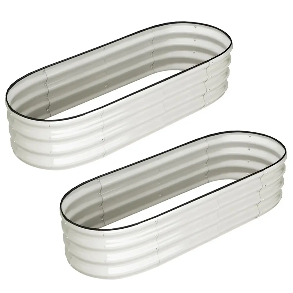Acekool 2-piece Oval Planter Box Set - 4.5'x2'x1.5' Galvanized Metal Garden Beds (White/stone Gray)