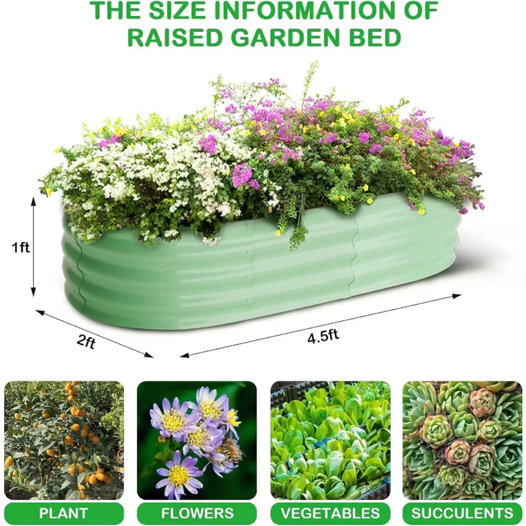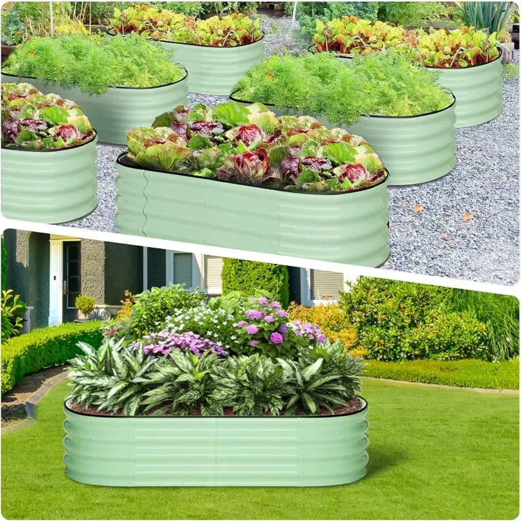 Acekool 2-piece Oval Planter Box Set - 4.5'x2'x1.5' Galvanized Metal Garden Beds (White/stone Gray)