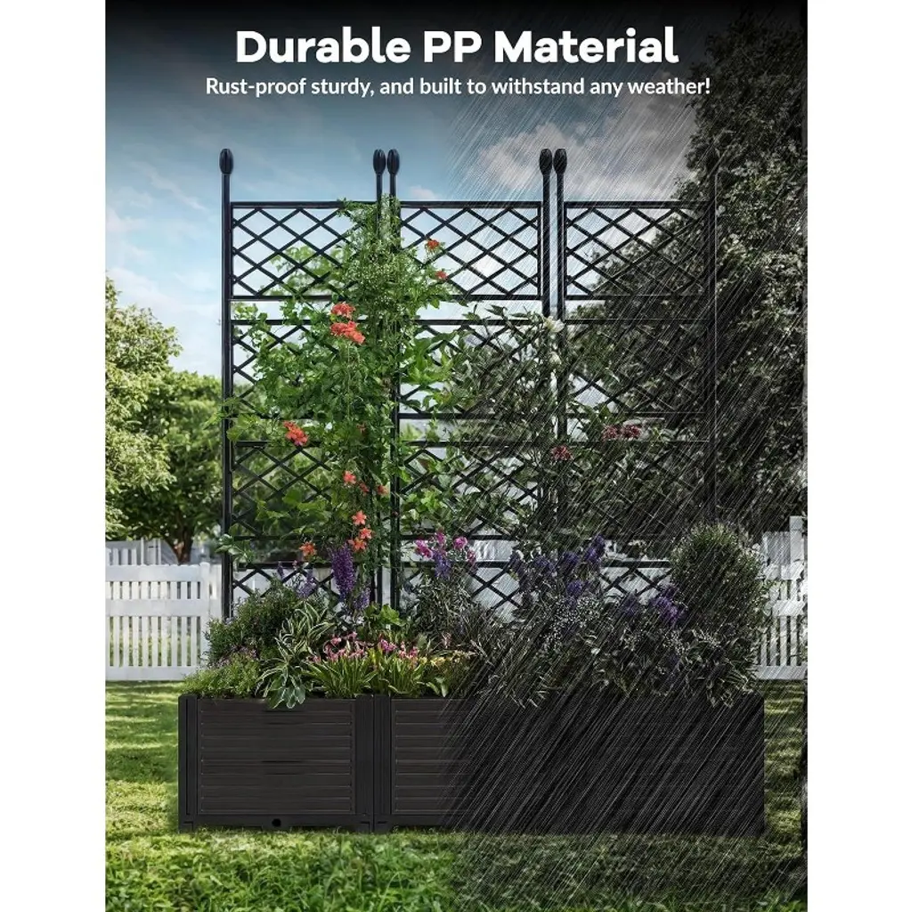 The Acekool 3 PCS Raised Garden Bed Kit with Trellis brings efficient vertical gardening to balconies, patios, decks, and urban outdoor spaces. This kit is ideal for those looking to grow more in less space, offering three stackable planter boxes and a tall trellis that encourage vines, vegetables, or decorative plants to flourish upward. The contemporary design fits well with a variety of outdoor styles and helps create a living privacy wall while keeping your planting area tidy. Engineered with UV-resistant and weather-ready components, the system withstands sun, rain, and cold. No tools are required for assembly—panels connect with locking clips, so you can customize arrangements to fit your needs. Each planter measures 16.2" x 16.2", and the trellis stands 50" tall, making this kit a reliable choice for small yards, deck corners, or urban gardening. Grow a mix of vegetables, climbing flowers, or fruits while maximizing square footage.